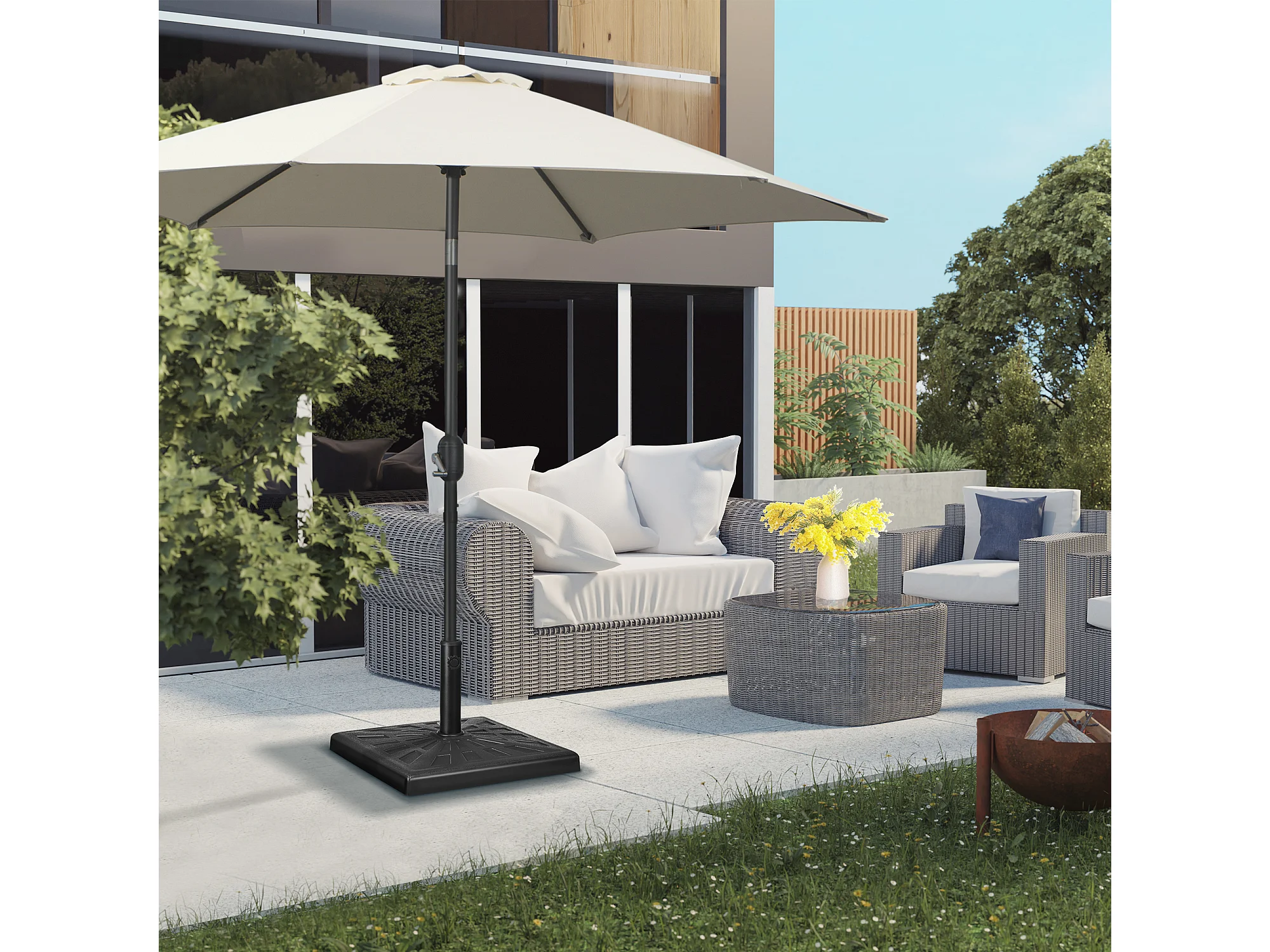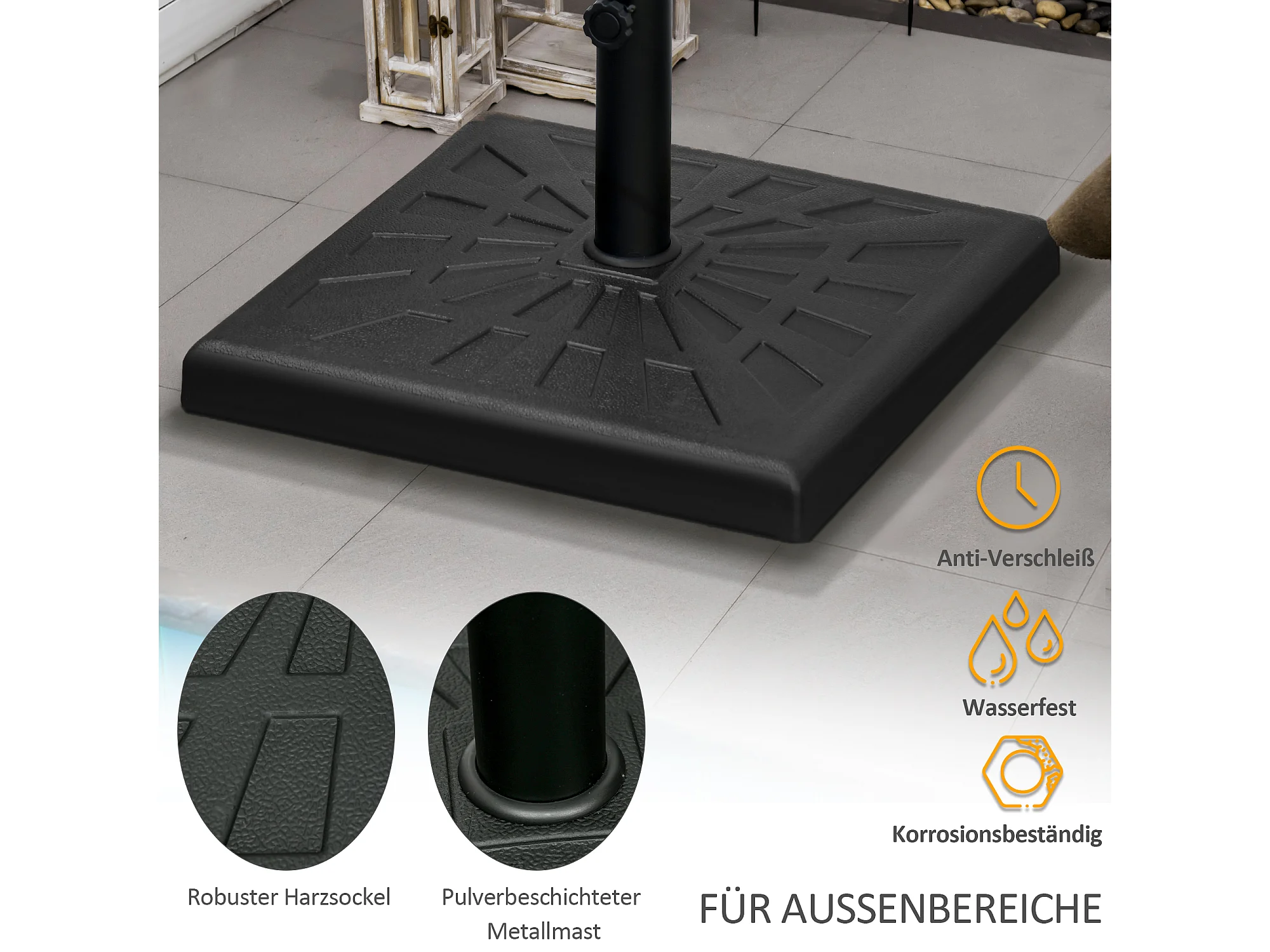 Stabiele parasolvoet van hars voor stangen Ø 32/38/48 mm zwart (51x51x32 cm)