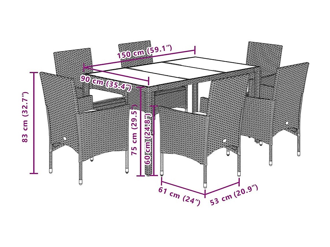 Bakersfield 7-delige Tuinset met kussens poly rattan en acaciahout zwart
