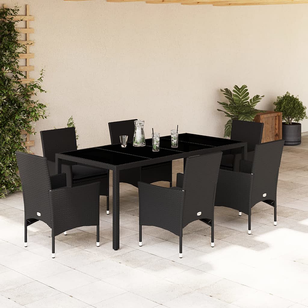 Garden Furniture - 7-delige Tuinset met kussens poly rattan zwart