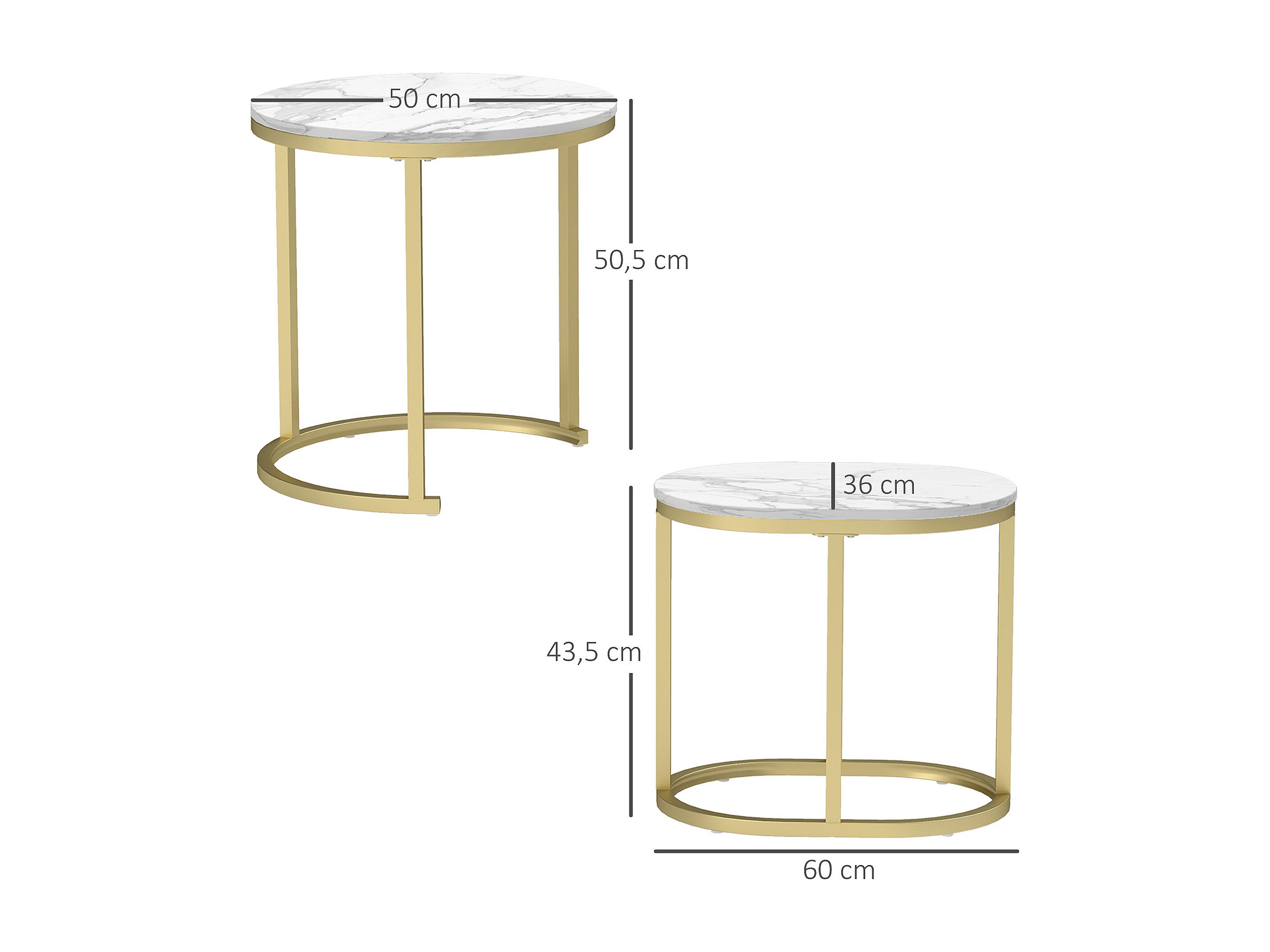 Stapelbare ronde bijzettafel, stalen frame, MDF, wit (50x50,5 cm)