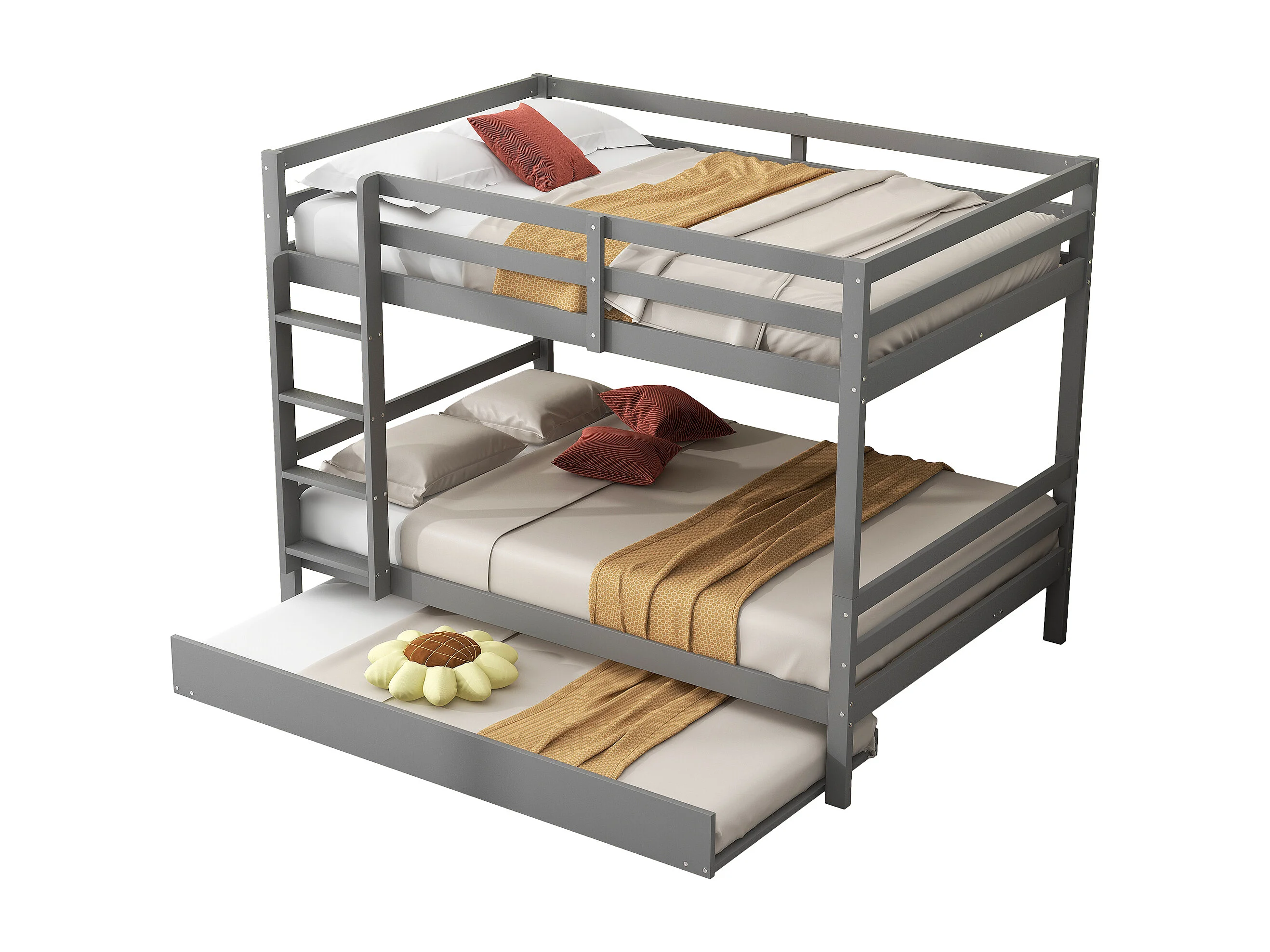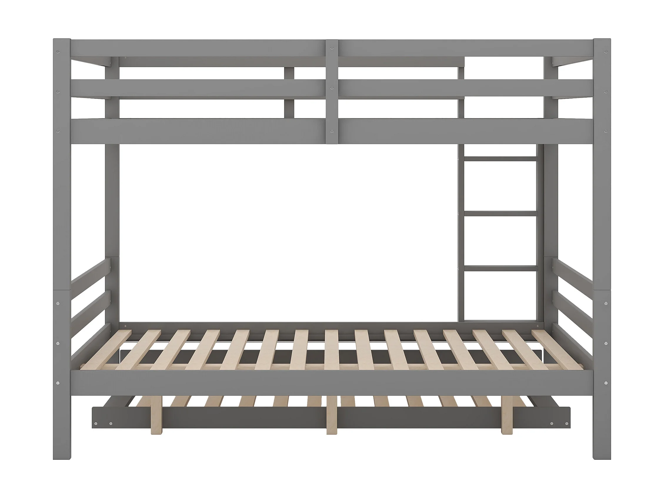 Stapelbed 140x200 cm, met uitschuifbed, hoge spijlen, stabiele ladder, ingebouwde kast, bureau, grijs (204,5x145x150 cm)