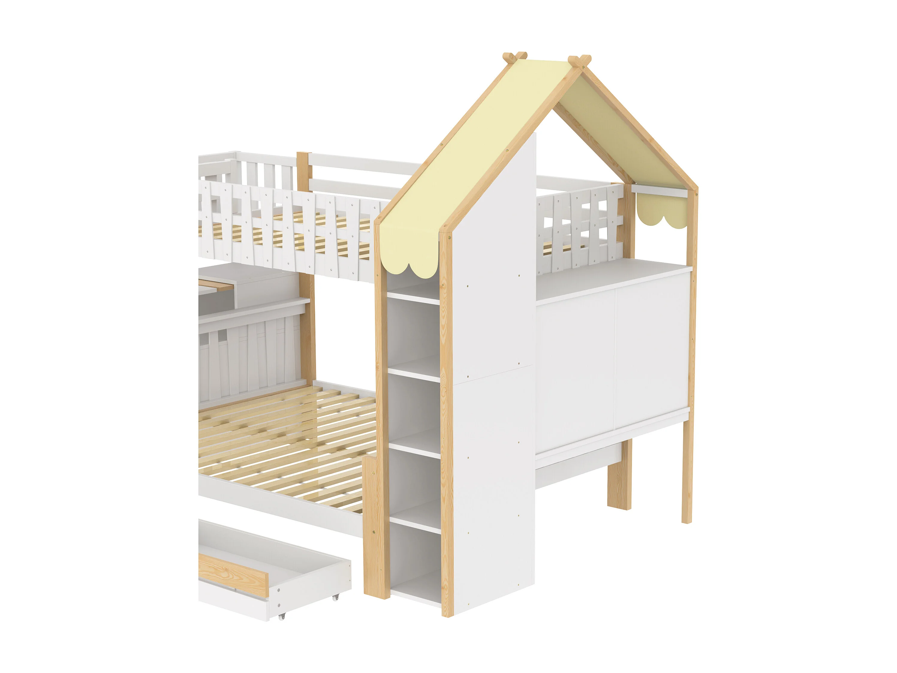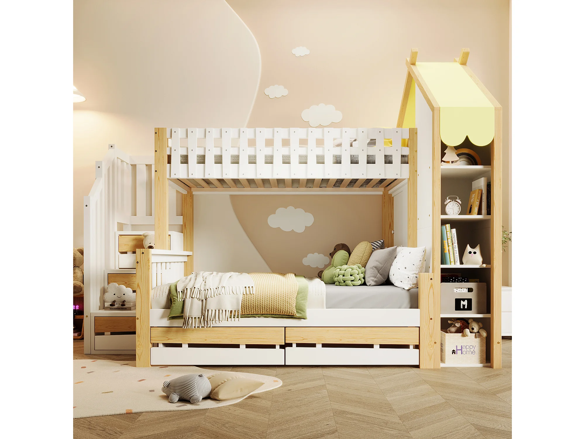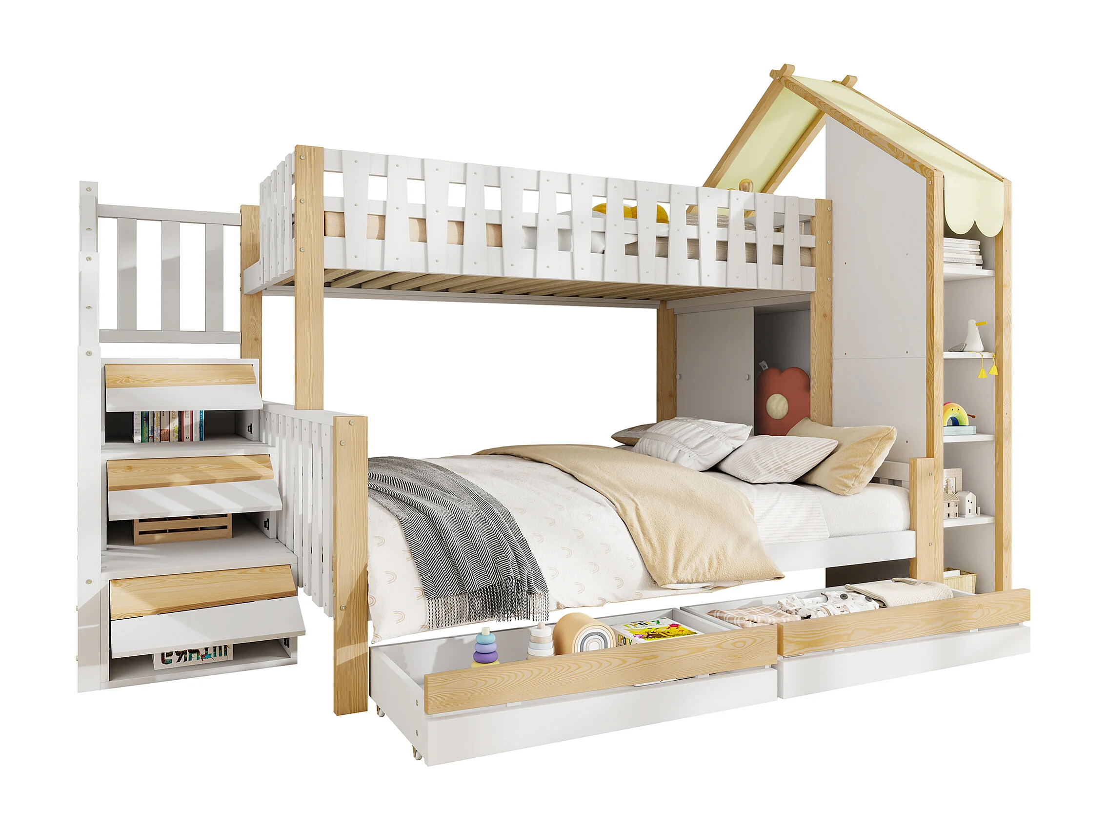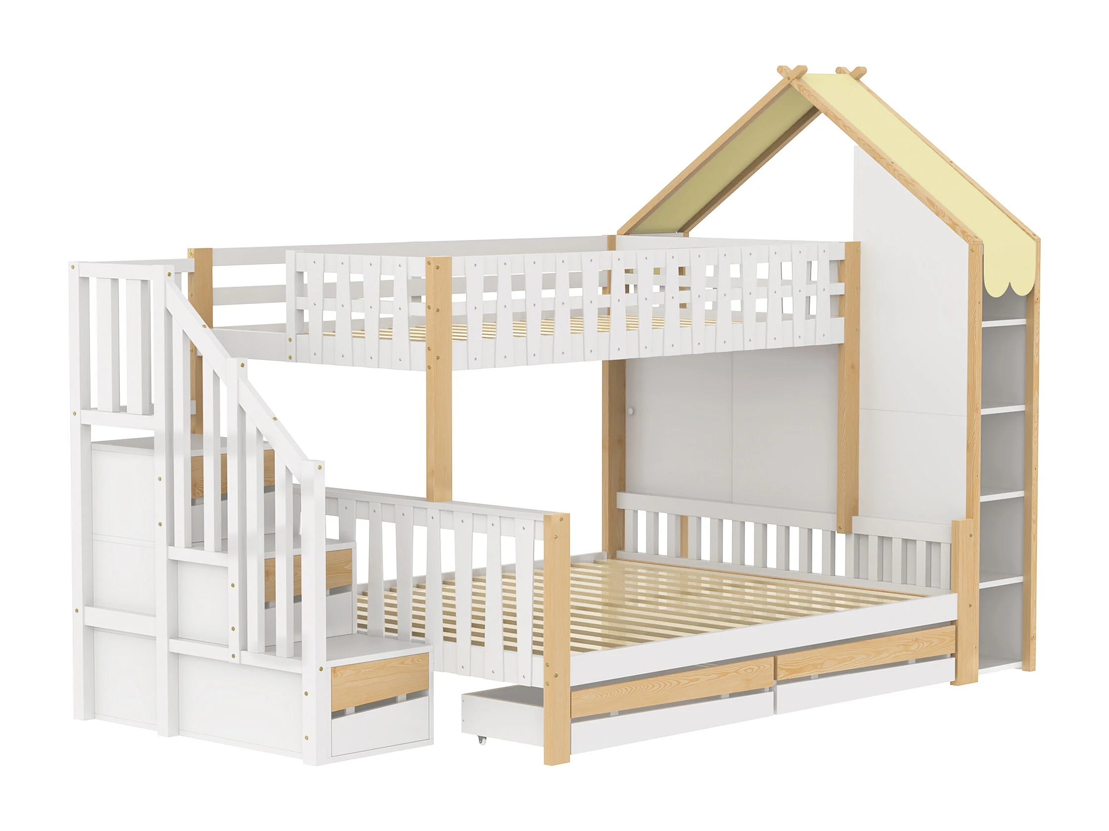 Stapelbed 90x200cm onderbed ruim opbergruimte huisontwerp veiligheid hout grenen wit naturel (Zonder matras)