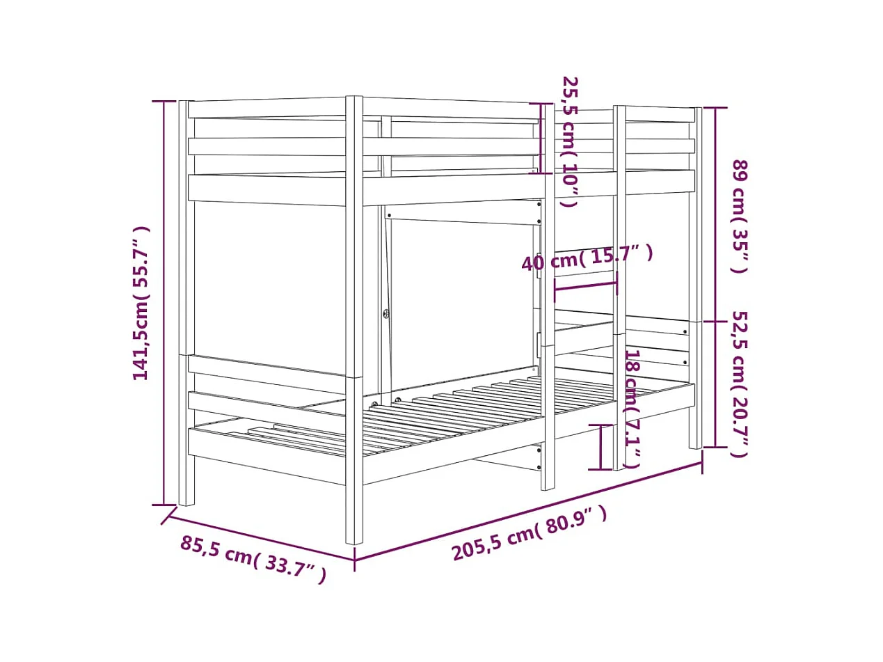Stapelbed 80x200 cm massief grenenhout wit NL64685