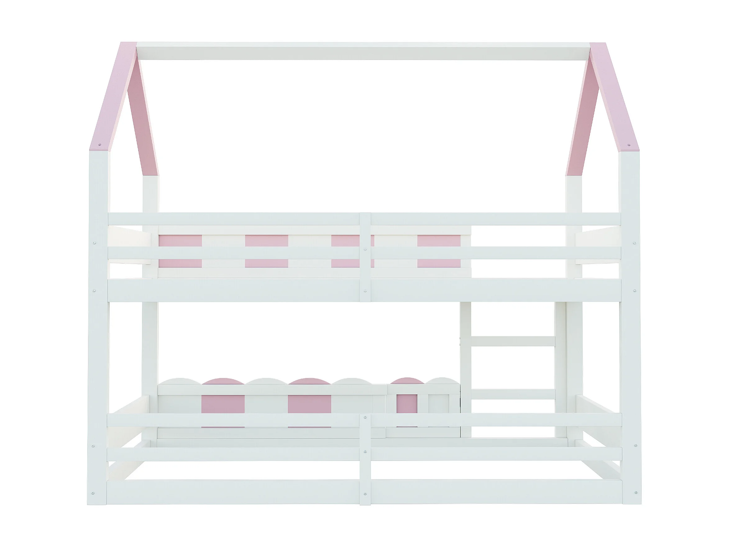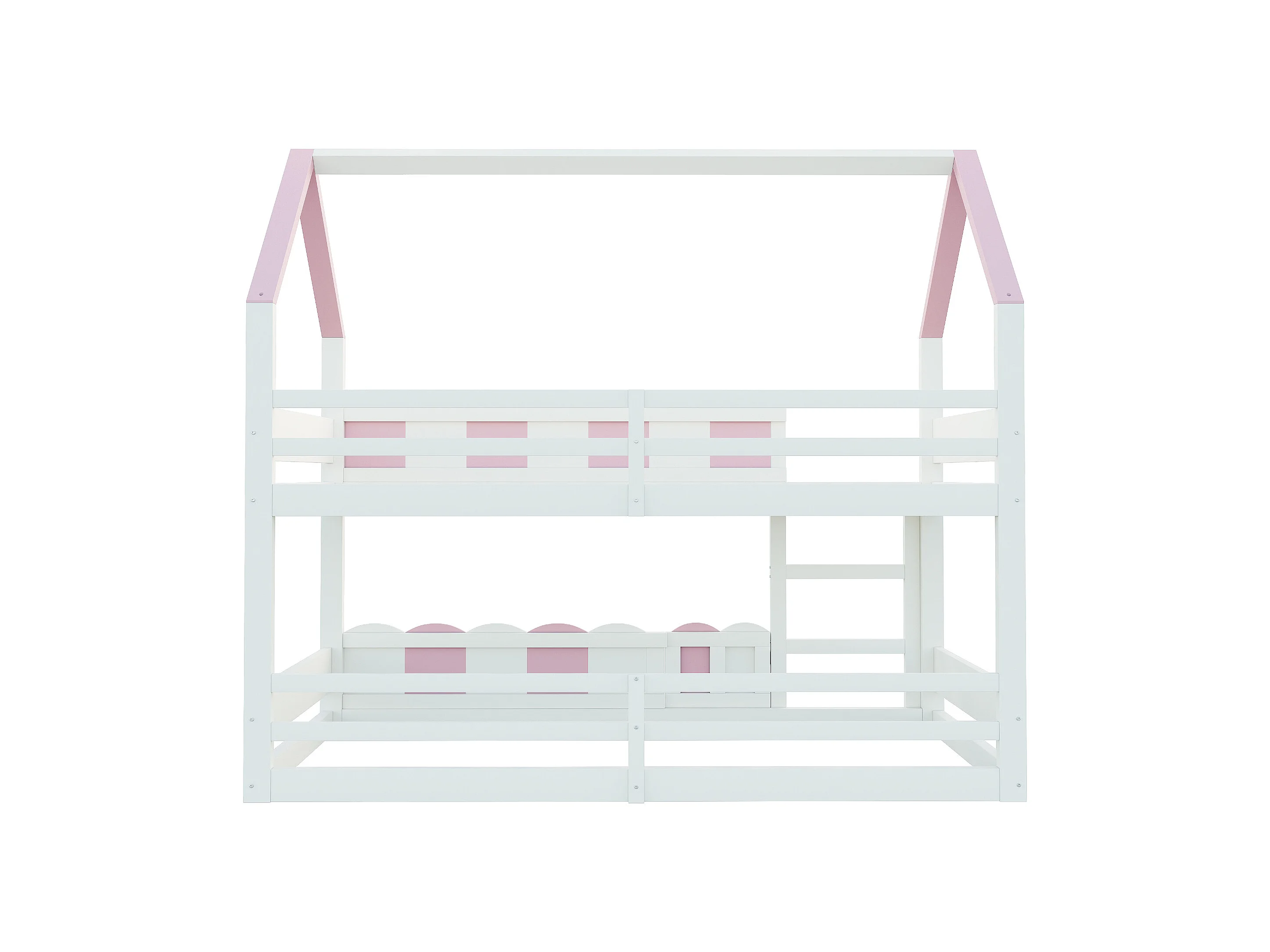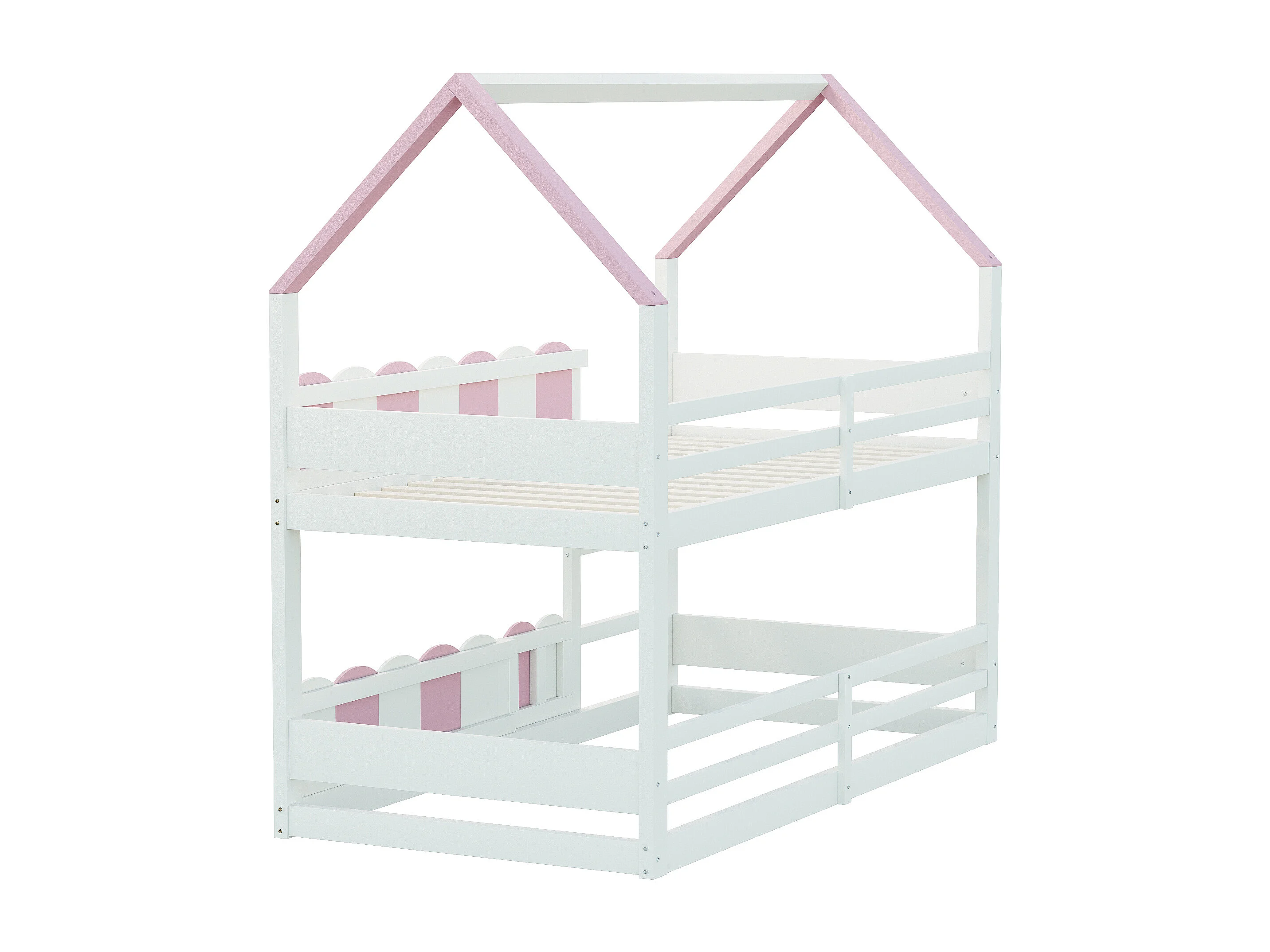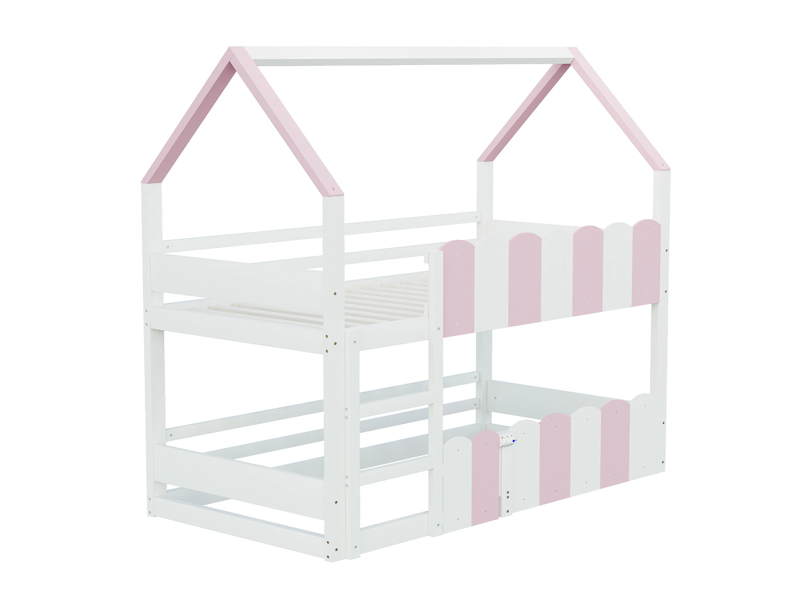 Stapelbed 90 x 200 cm - Kinderbed met uitvalbeveiliging en trap - roze en wit hout - matras niet inbegrepen