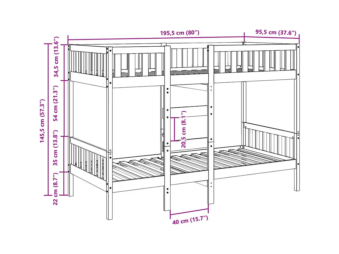 Stapelbed 90x190 cm massief grenenhout wit NL92381