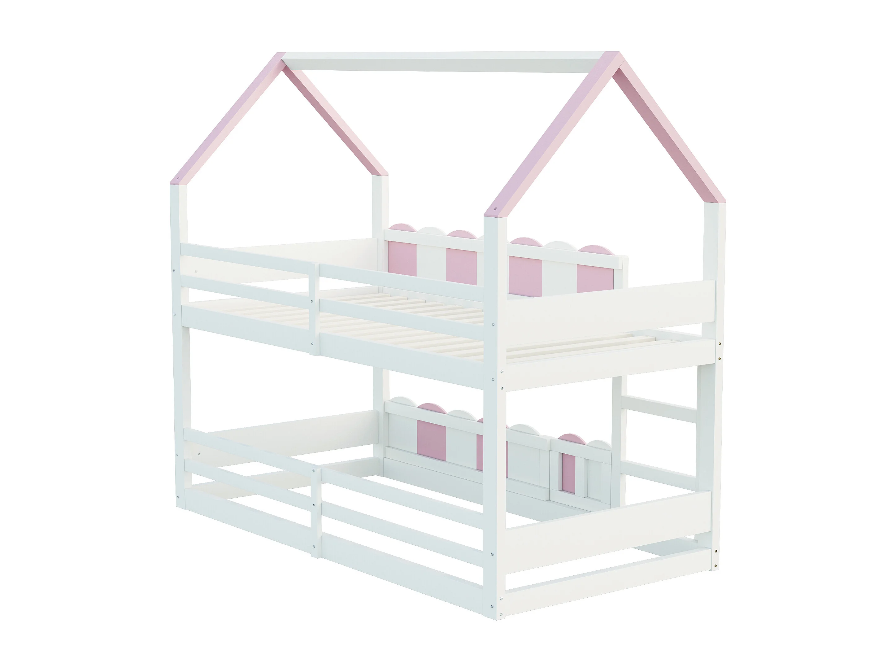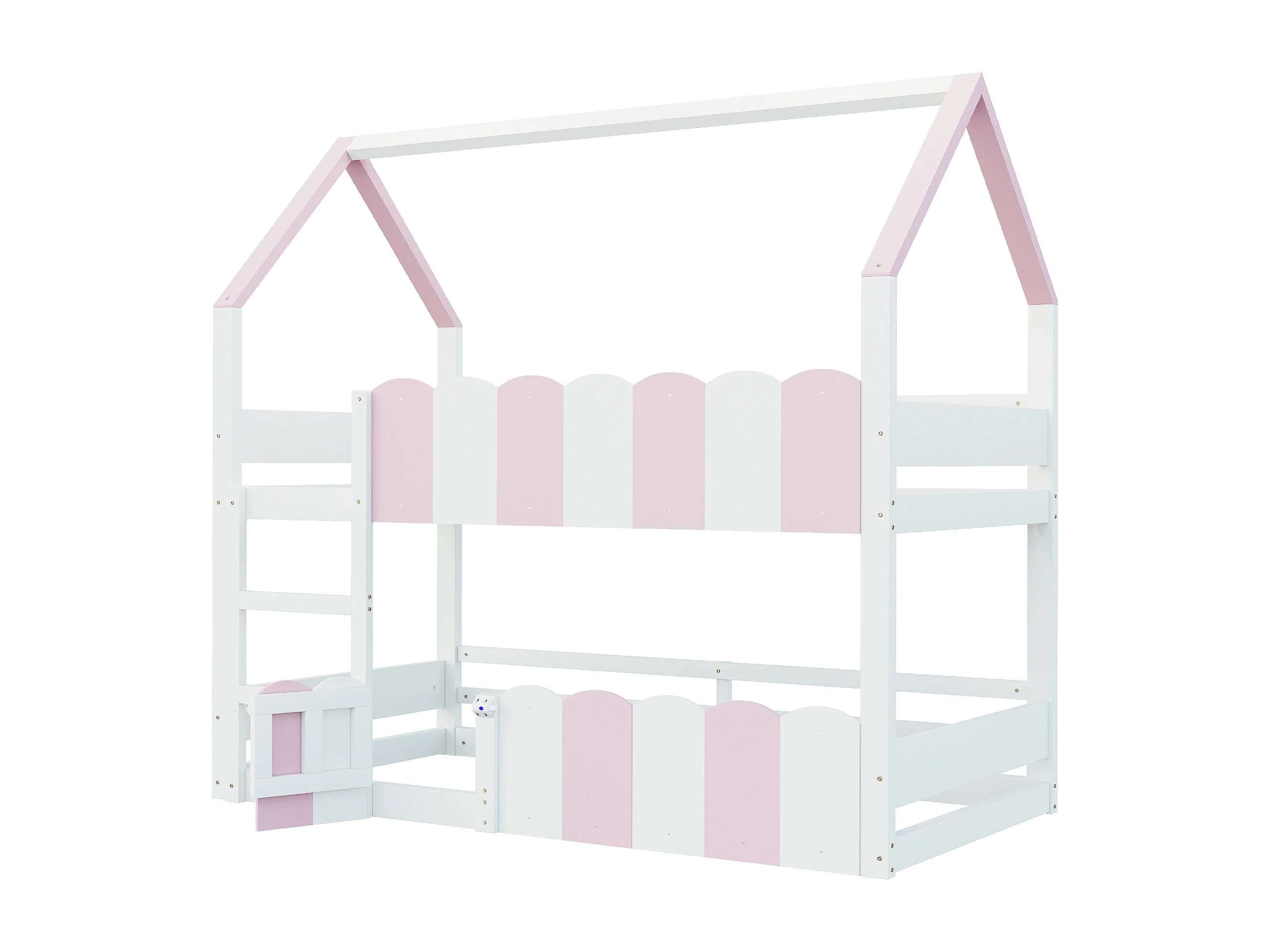 Stapelbed 90x200 cm, kinderbed met ladder en uitvalbeveiliging, 1 deur - wit en roze (zonder matras)