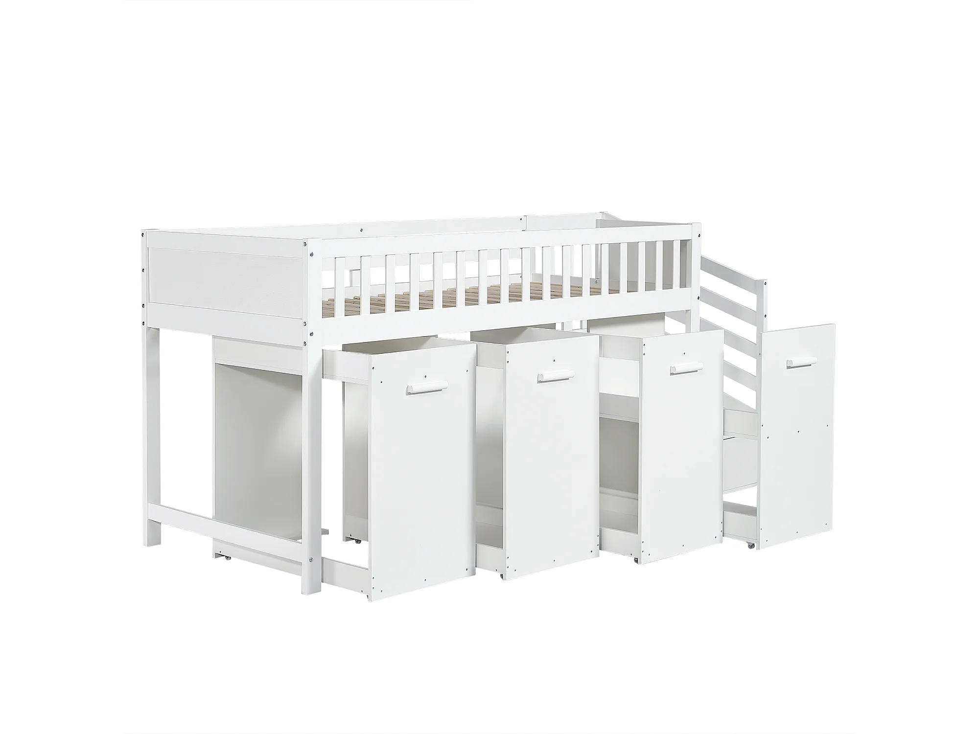 Stapelbed 90x200cm kinderbed minimalistisch ruimtebesparend met bureau hout slaapkamer wit (Zonder matras)