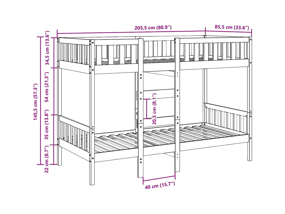 Stapelbed 80x200 cm massief grenenhout wit NL64685