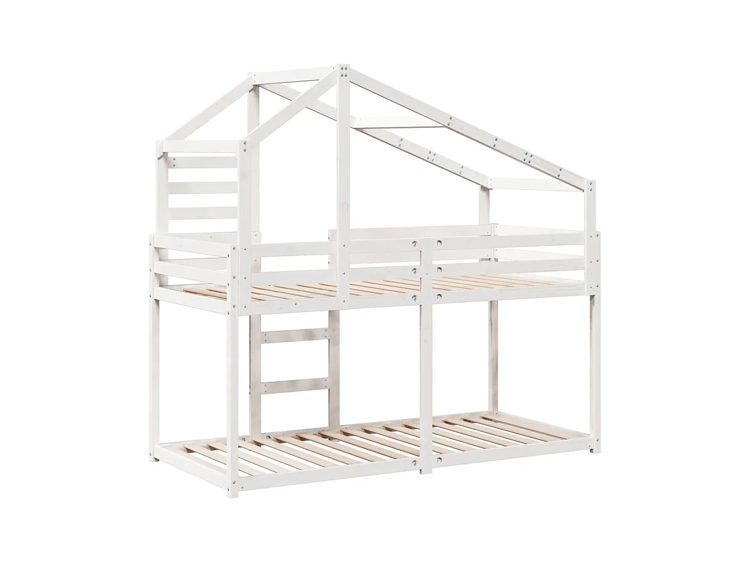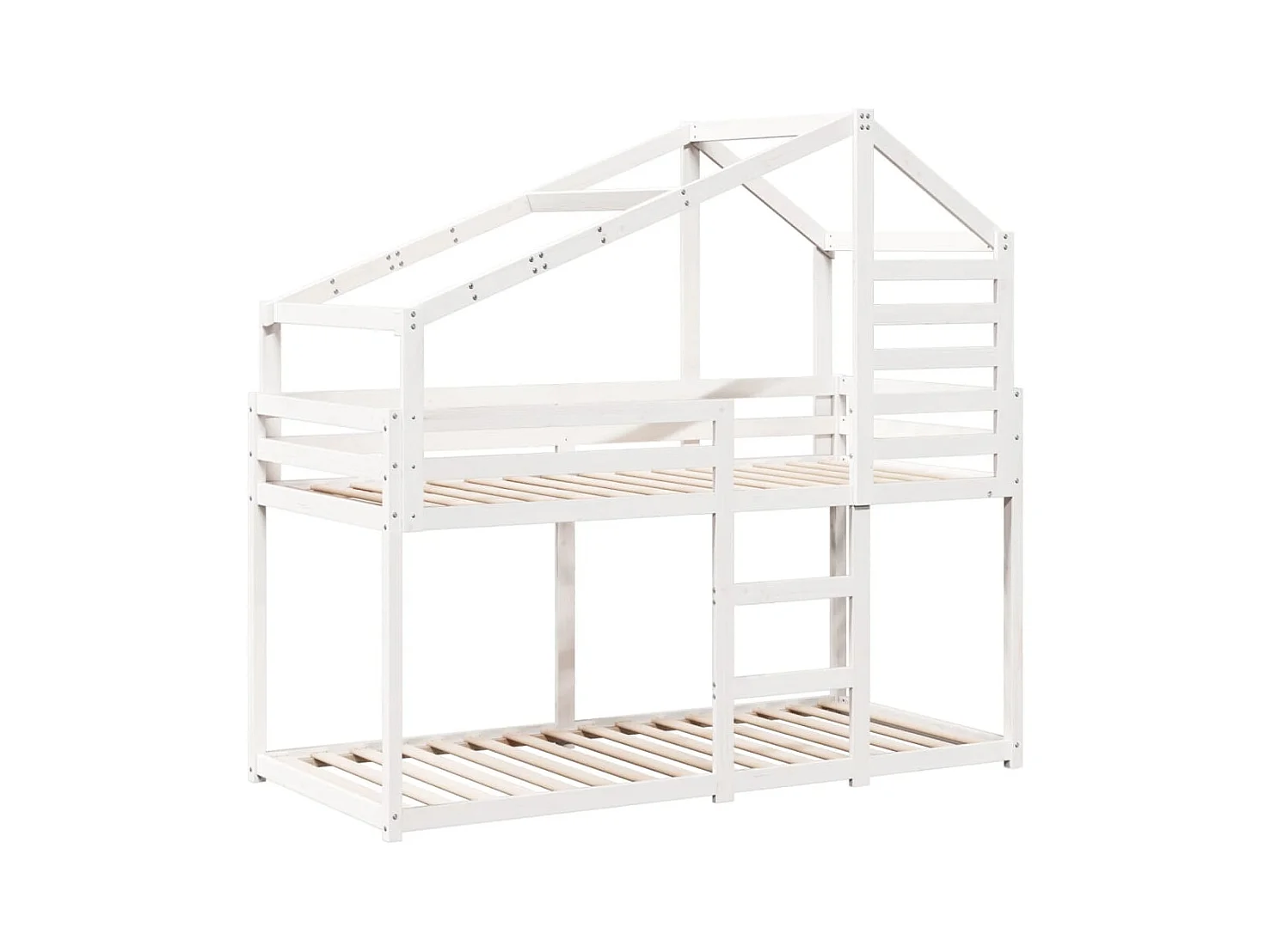 Stapelbed met bedhuis massief grenenhout wit 80x200 cm BE636018