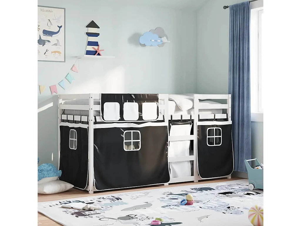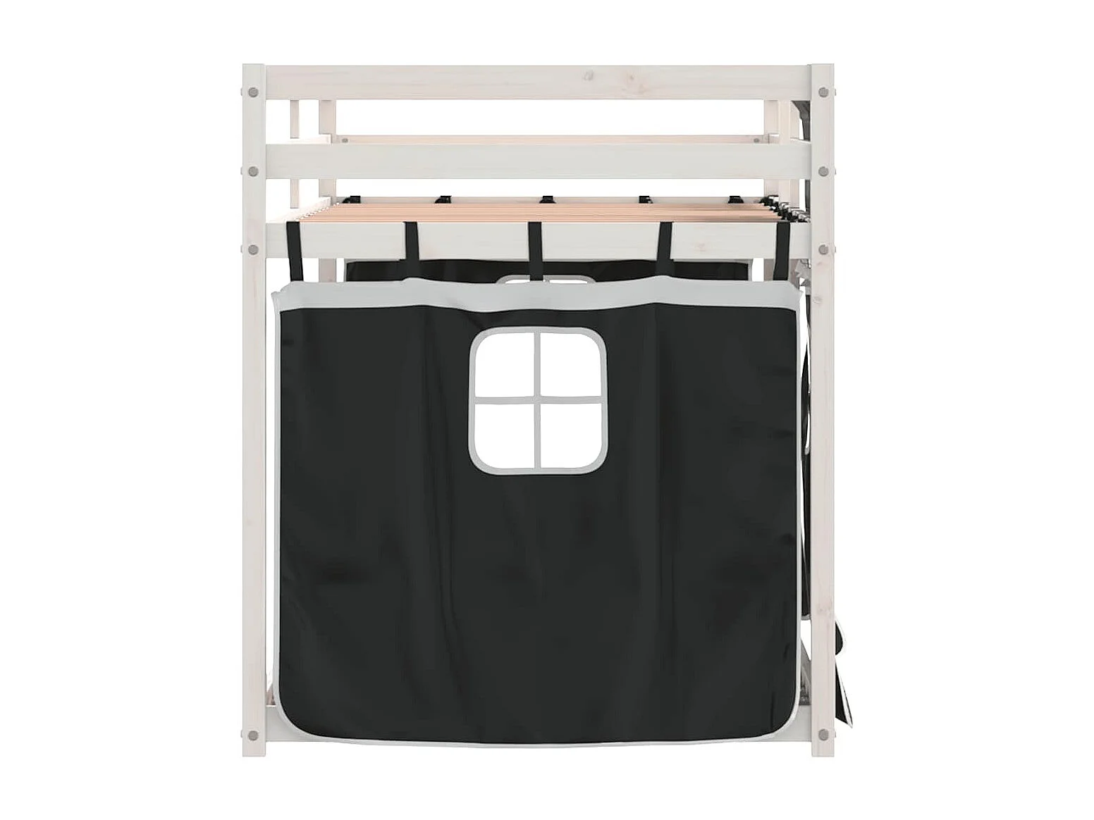 Stapelbed met gordijnen 90x190 cm grenenhout wit en zwart