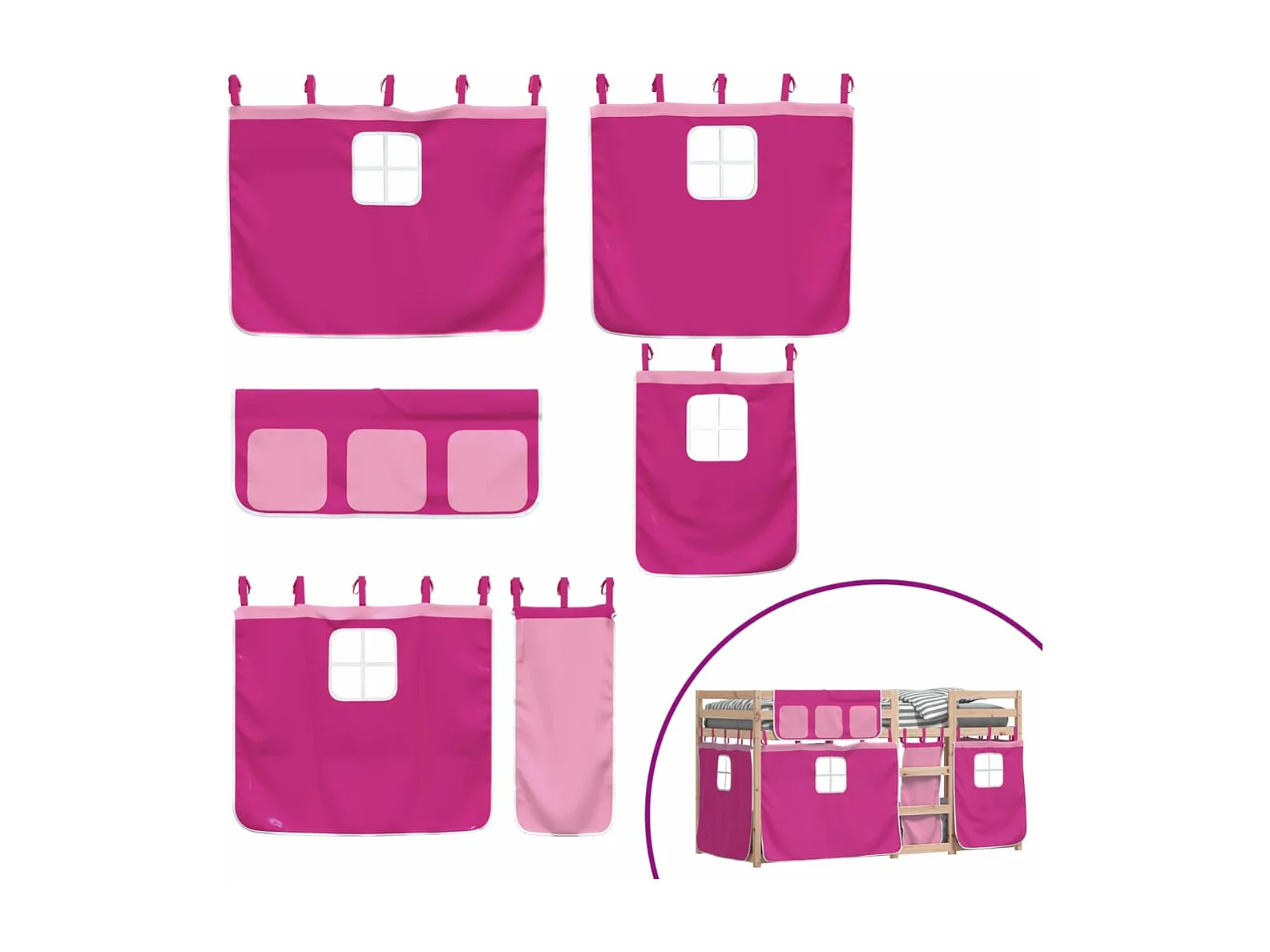 Stapelbed met gordijnen 90x200 cm grenenhout roze