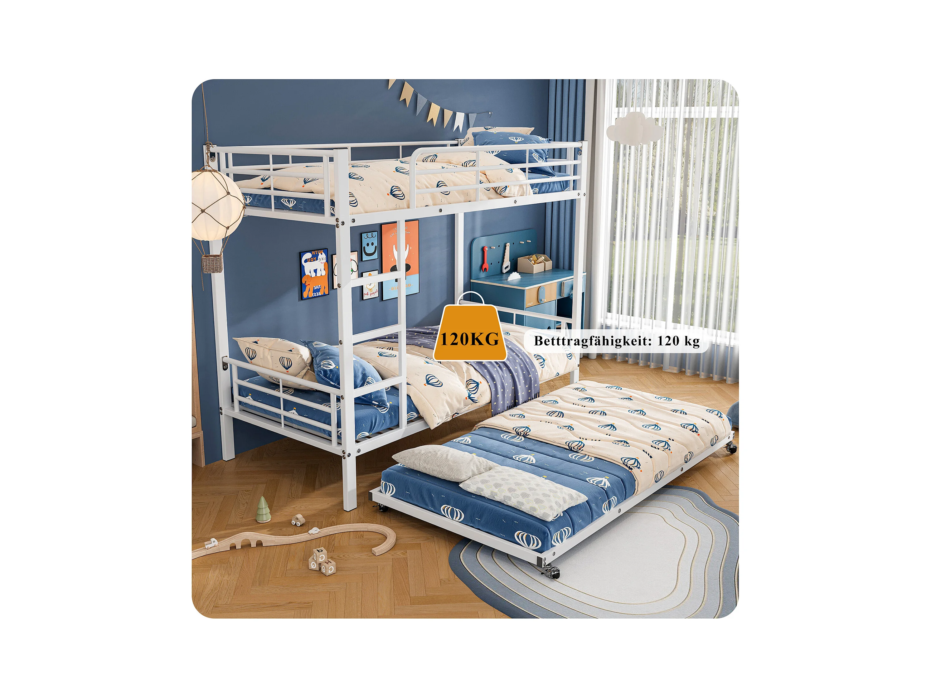 Stapelbed van metaal met uitschuifbaar bed, veilig voor kinderen en tieners, wit (204x95x160cm)