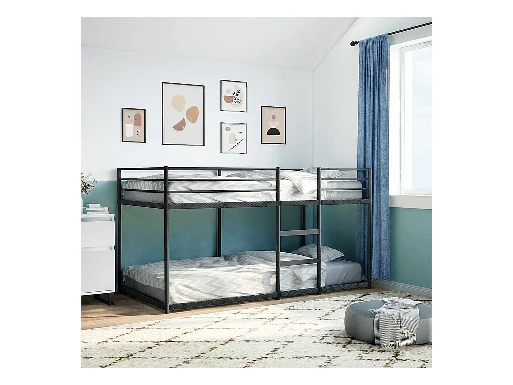 Stapelbed met glijbaan en gordijnen wit en zwart 80x200 cm BE252169