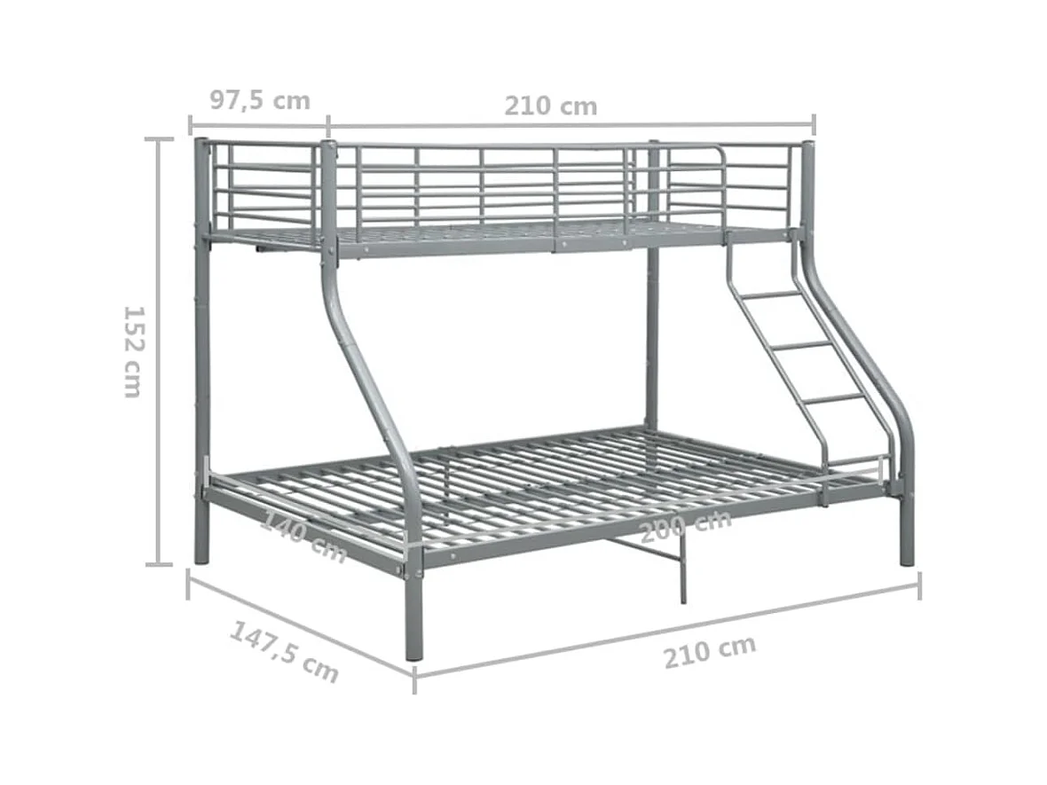 Stapelbedframe metaal grijs 140x200 cm/90x200 cm