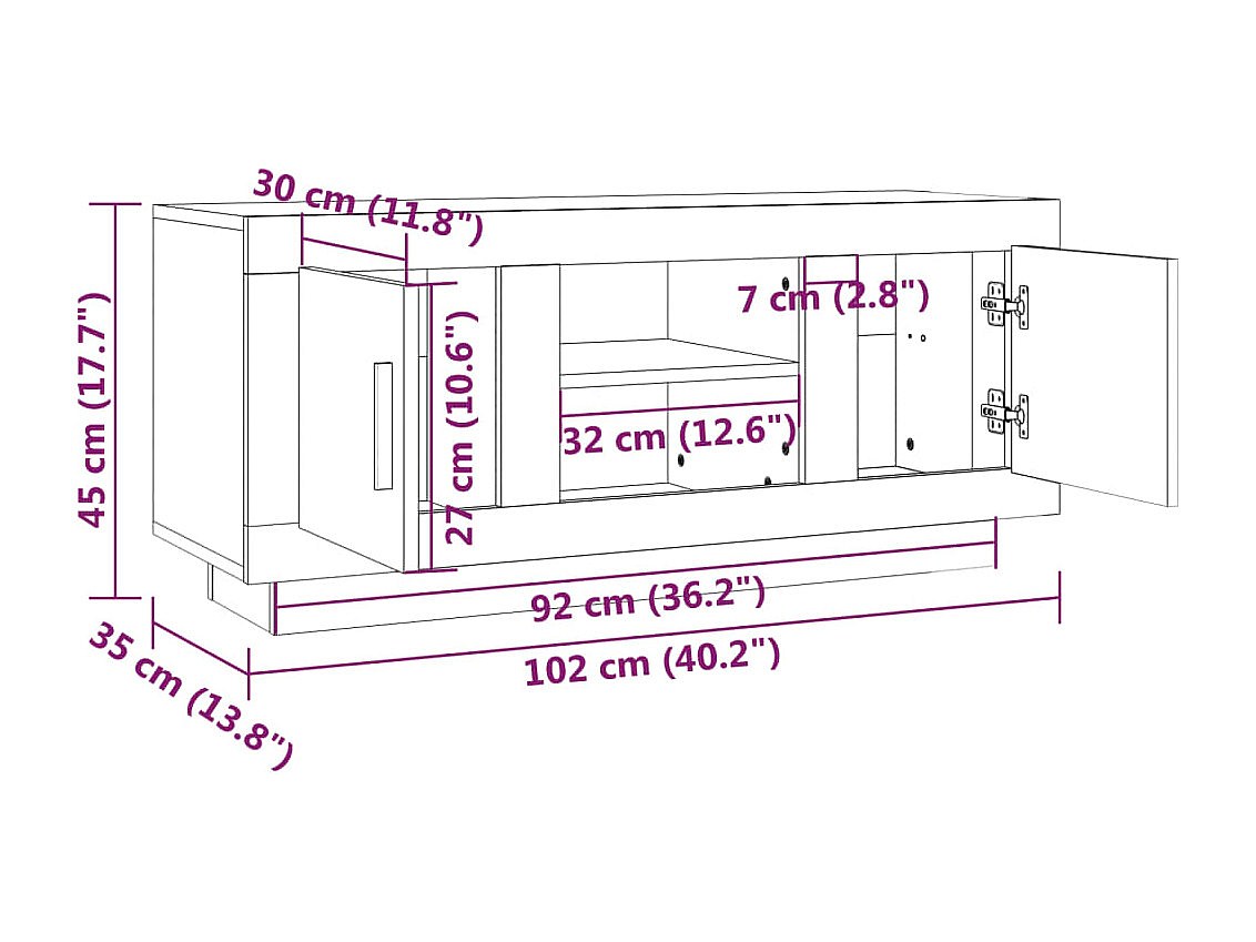 Stephen Tv-meubel 102x35x45 cm bewerkt hout wit