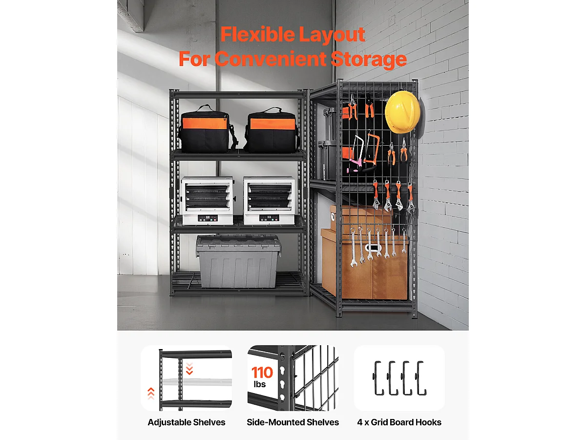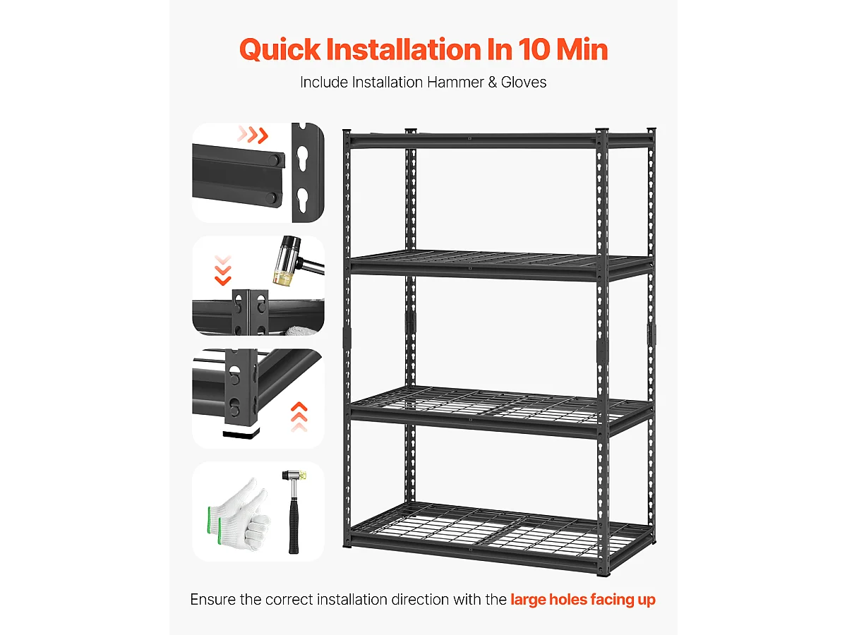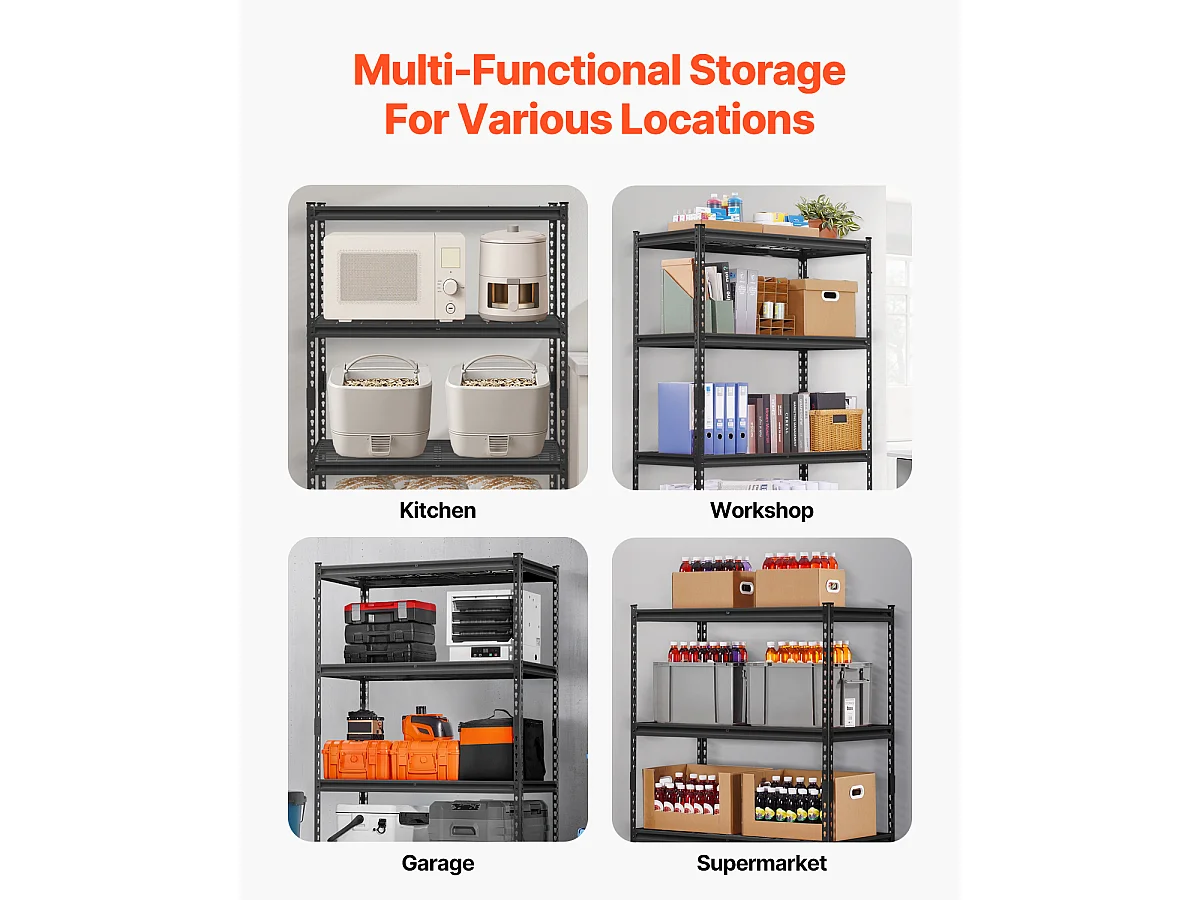 Sterke Verstelbare Opbergplanken SucceBuy met 4 Niveaus, 1088 kg, van SPCC-Koolstofstaal, voor Keukens, Garages