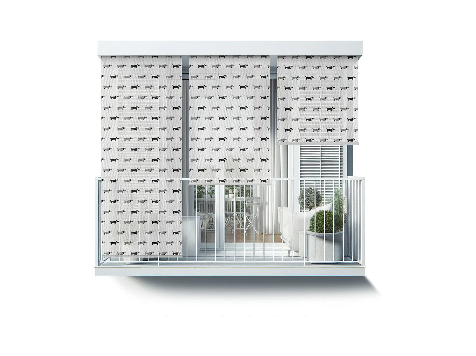Modern buitenrolgordijn - 100x290 cm - Zwart-wit cartoon honden Balkongordijn, Balkongordijnen en Zonwerend gordijn