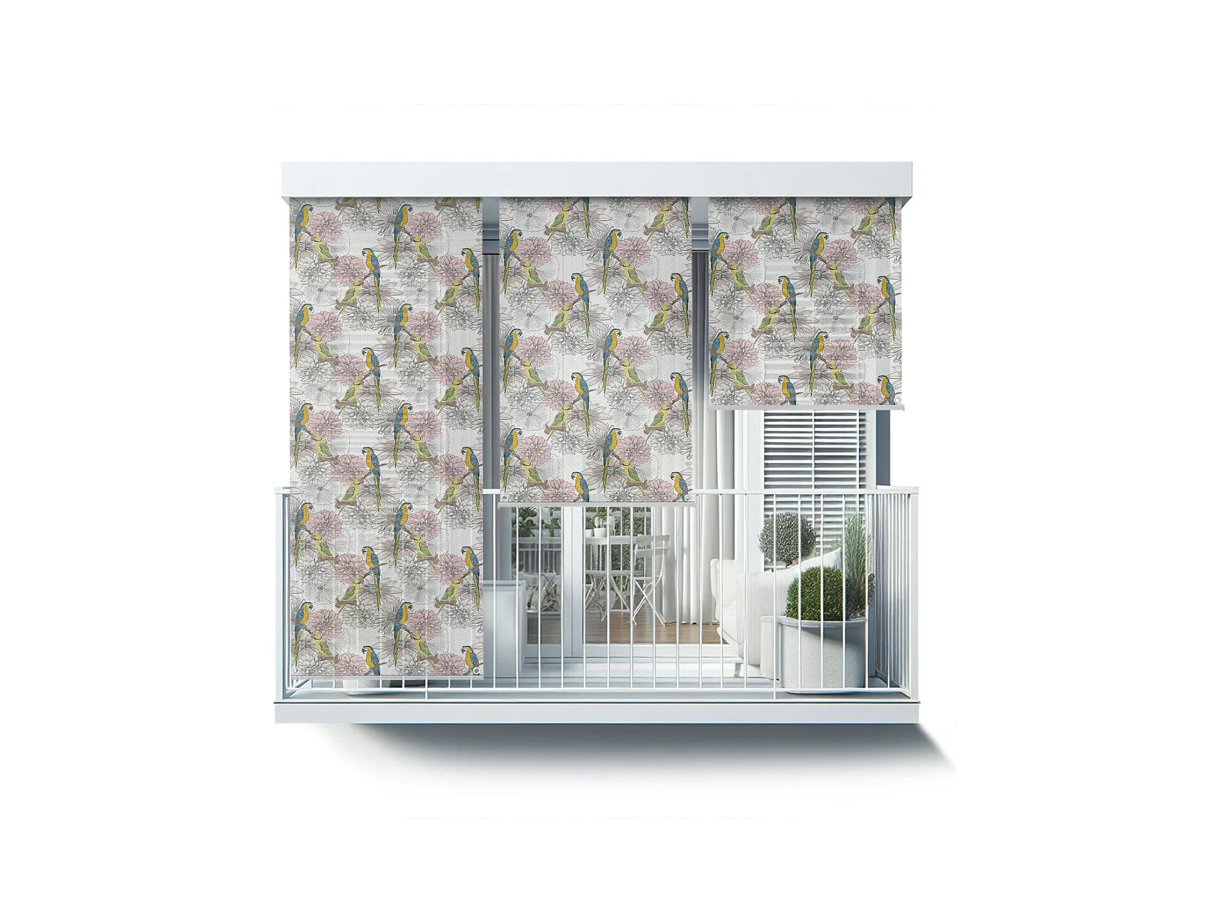 Stijlvol buitenrolgordijn - 120x180 cm - Papegaaien en bloemen Balkongordijn, Balkonrolgordijn, Zonwerend gordijn
