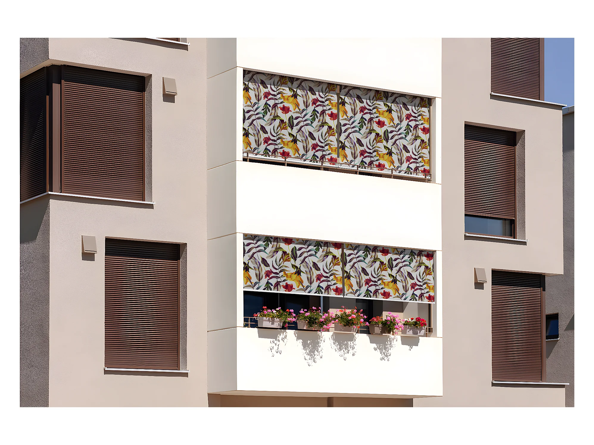 Origineel buitenrolgordijn - 50x290 cm - Bloem- en bladpatroon Balkongordijn, Balkongordijnen, Zonweringgordijn
