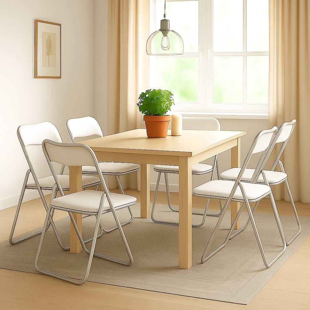 Stoel 0, Set van zes klapstoelen, Ruimtebesparende vergaderstoel, Wachtkamerfauteuil, 43x47h78 cm, Wit