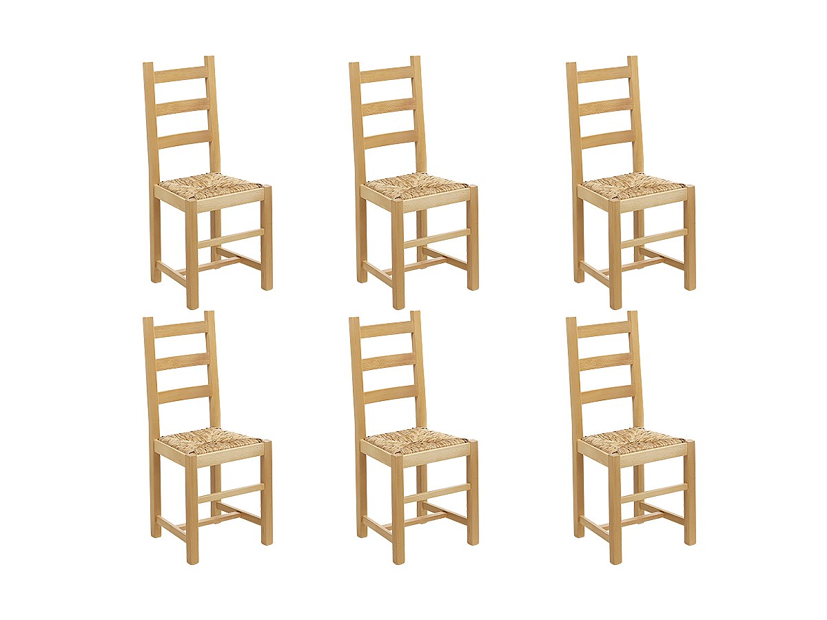 Set van 6 stoelen FARMER - Massief beuken en zitting van rijststro
