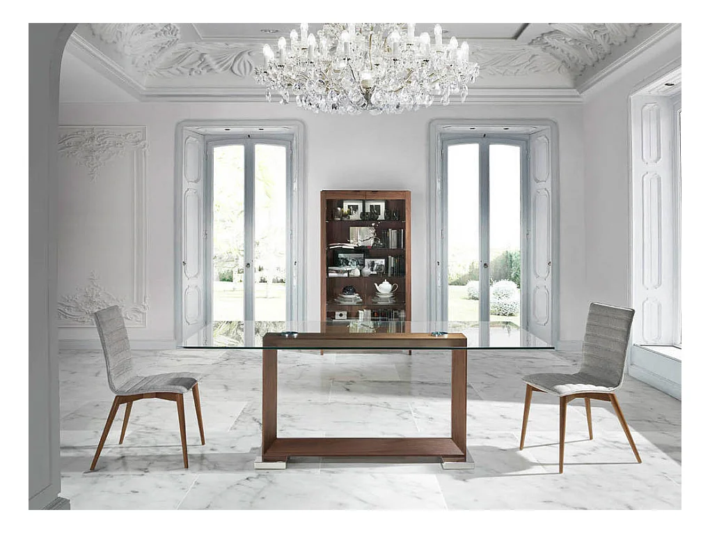 Verlengbare eettafel 6 tot 10 plaatsen van keramiek en metaal - Wit marmereffect en antraciet - COREMA van Pascal MORABITO
