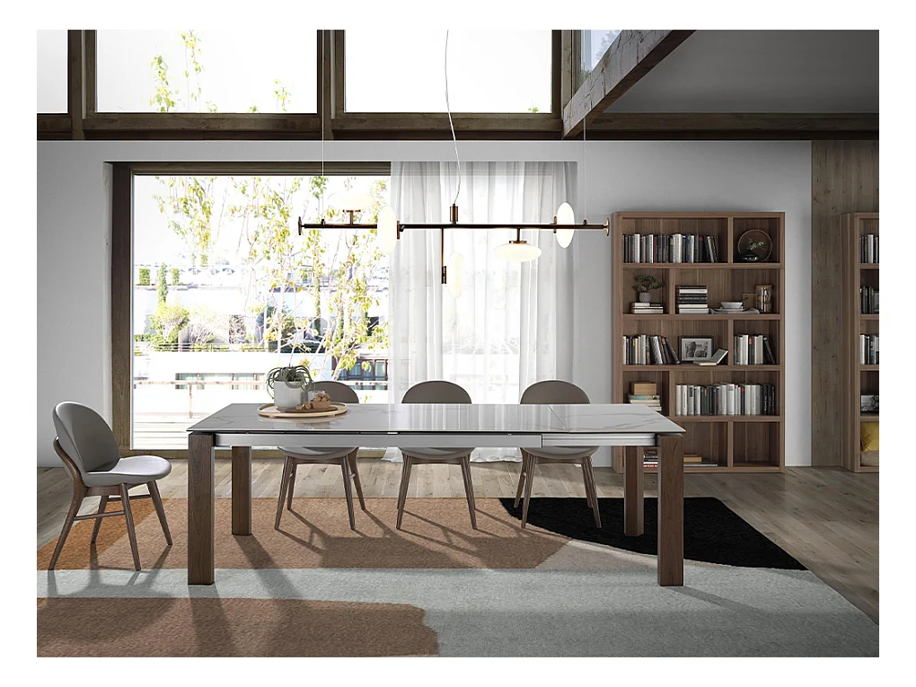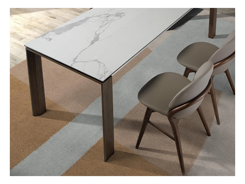 Stoel in walnootkleurig essenhout en Sabry-leer