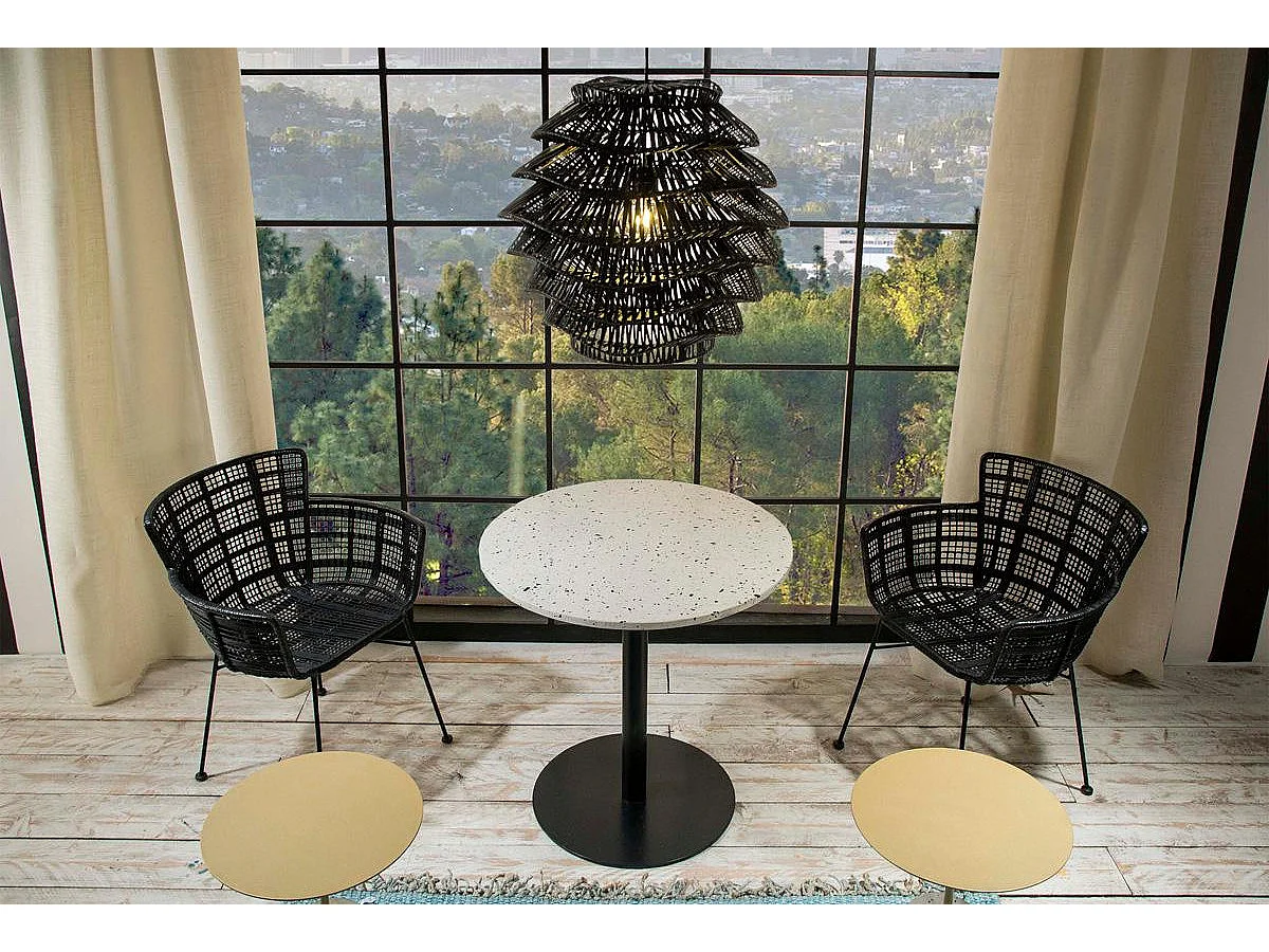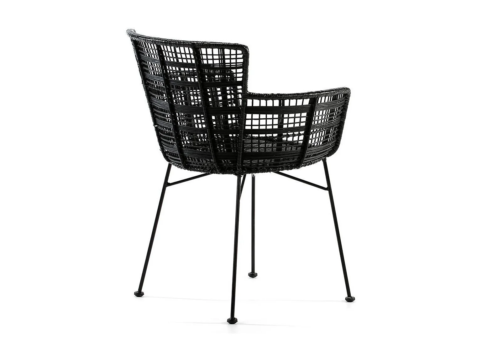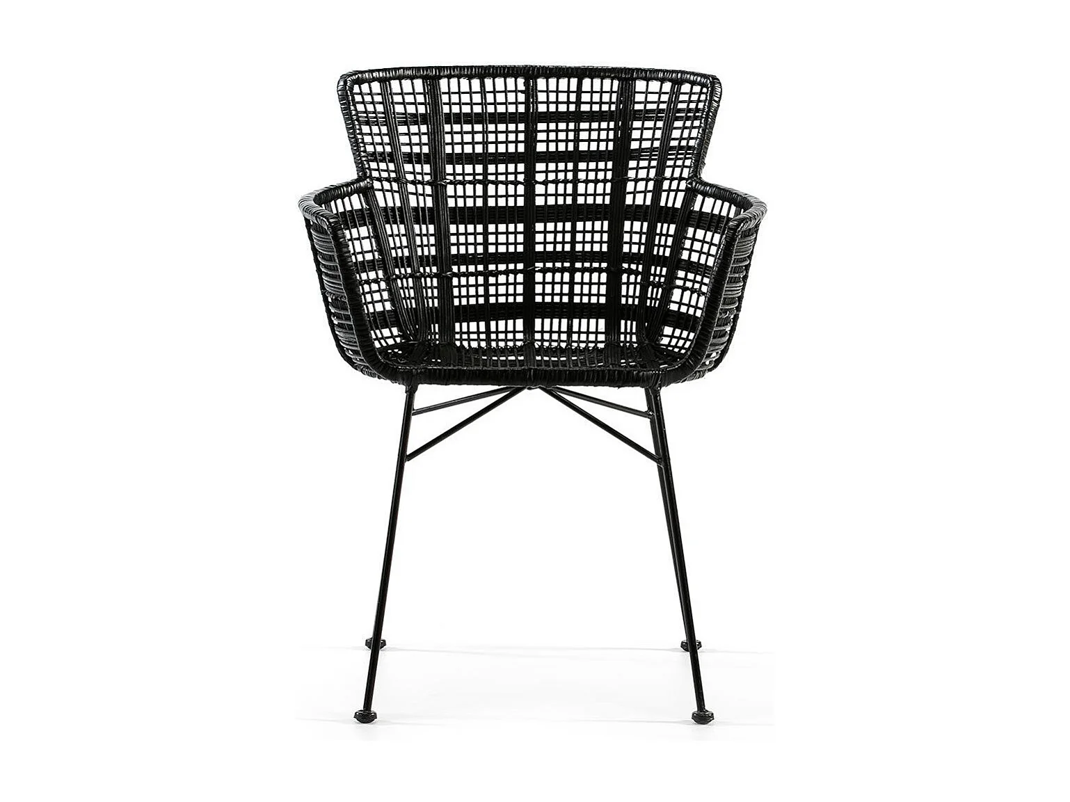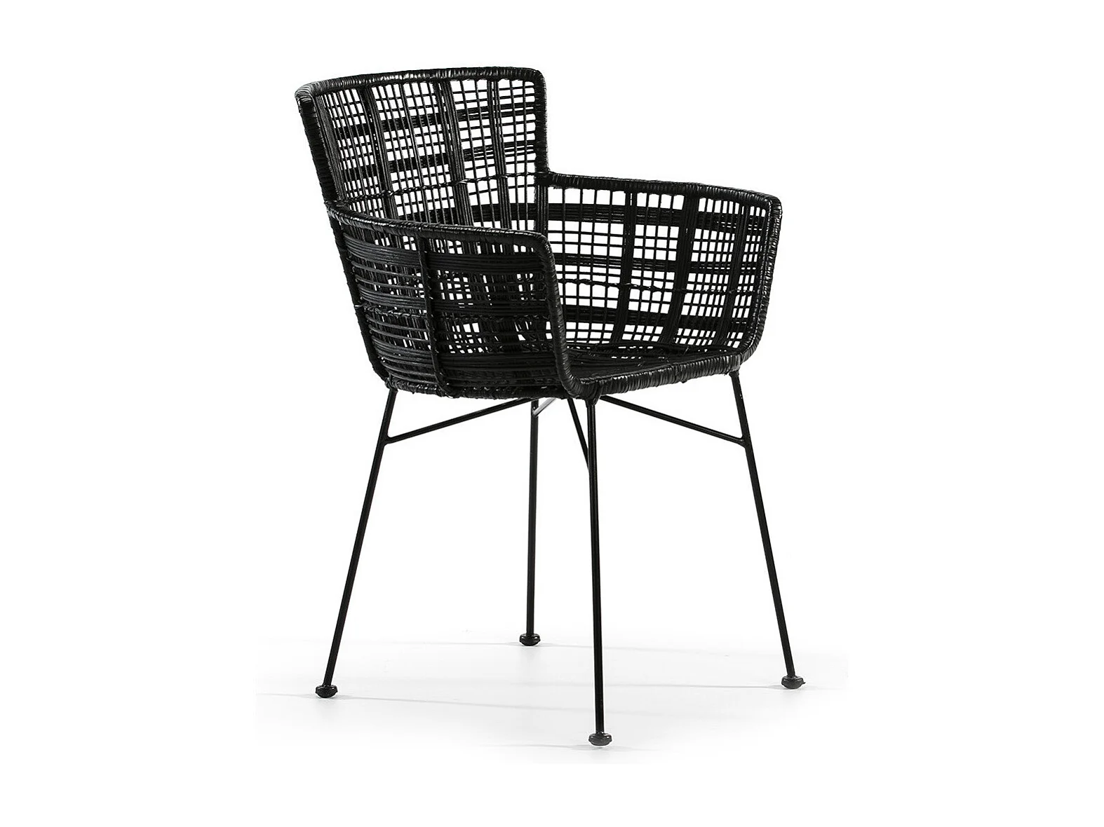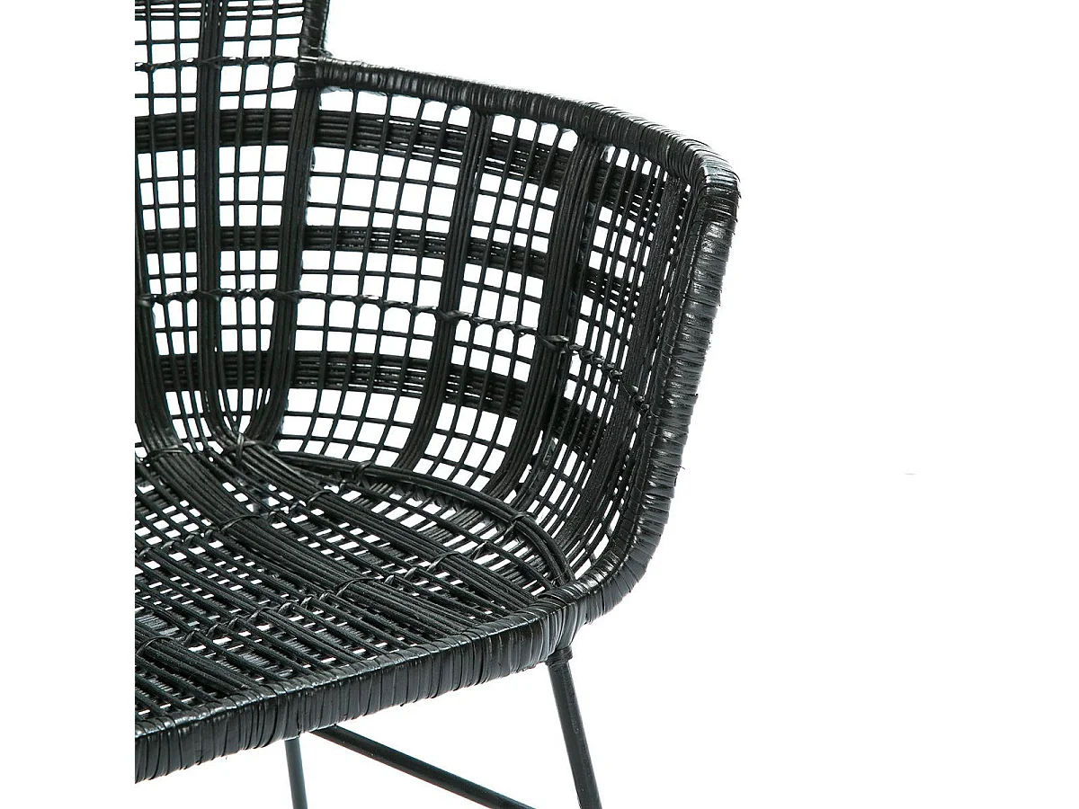 Stoel met rieten armleuningen en zwart metalen poten van Mim's
