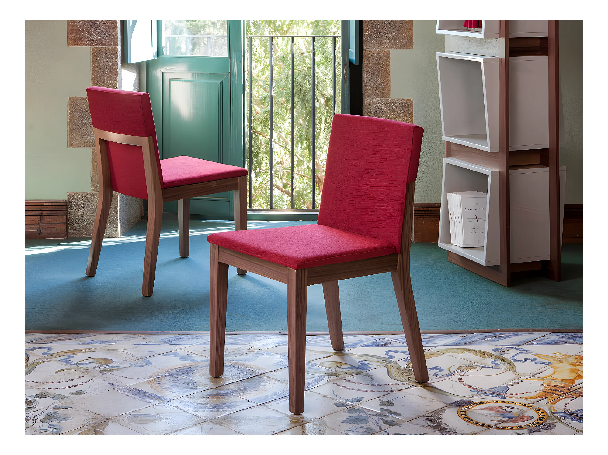 Stoel van notenhout en Moona-stof - Set van 2-Kleur MIRAGE 05