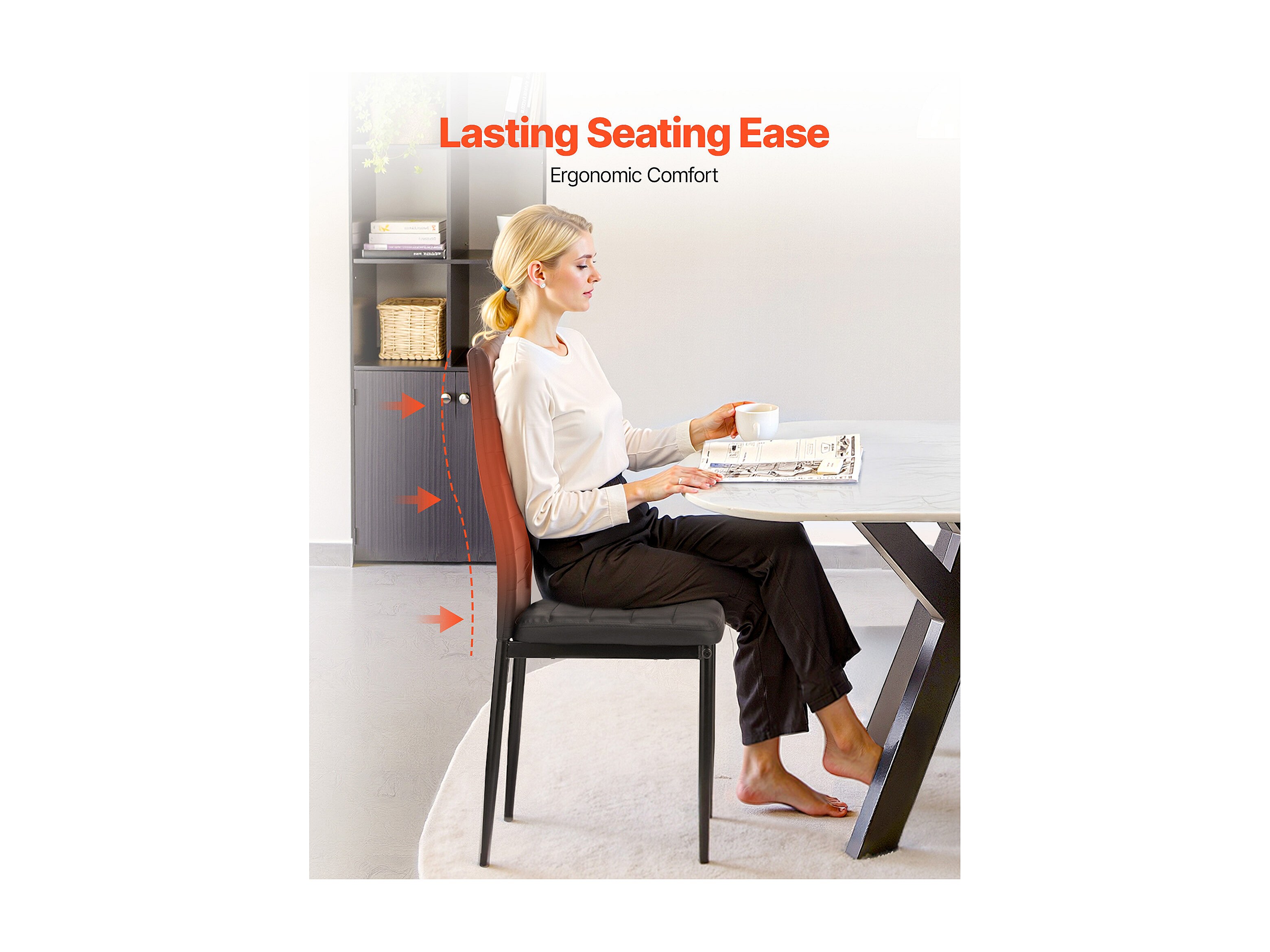 Stoelen SucceBuy Eetkamer Modern, Set Keukenstoelen van Leer 6-delig, met Rugleuning, Dikke Kussens en Metalen Poten, voor Eettafel