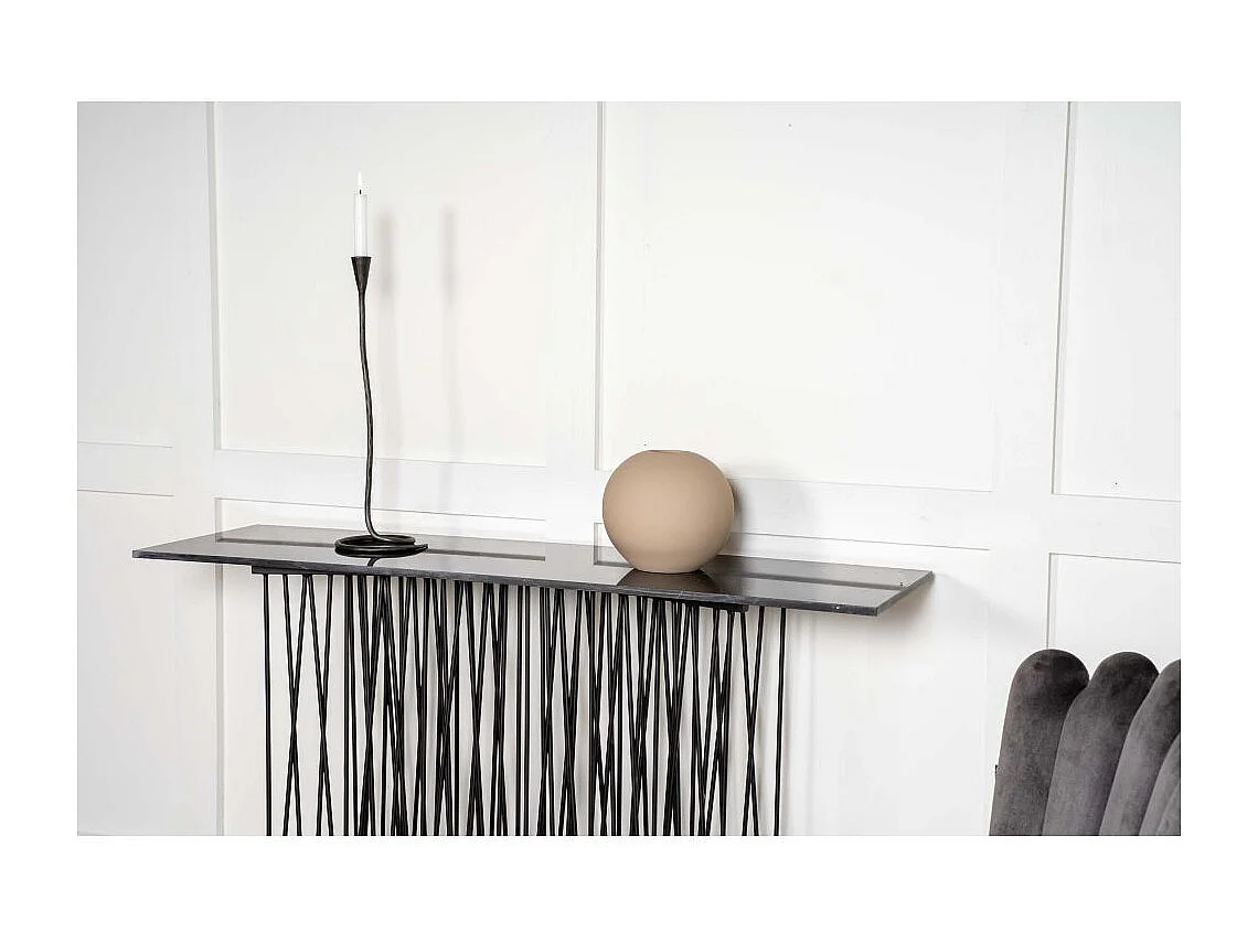 Stone sidetable 37x130 cm glas zwart marmor decor.