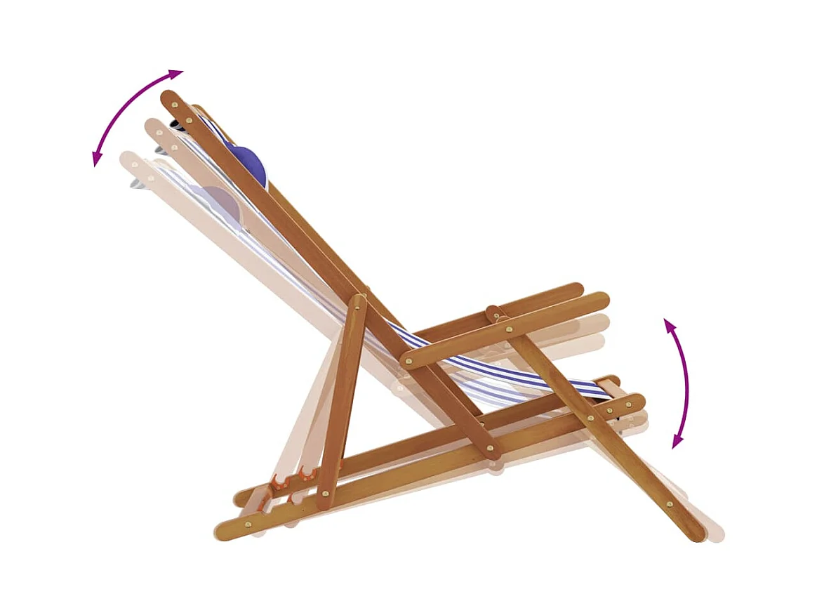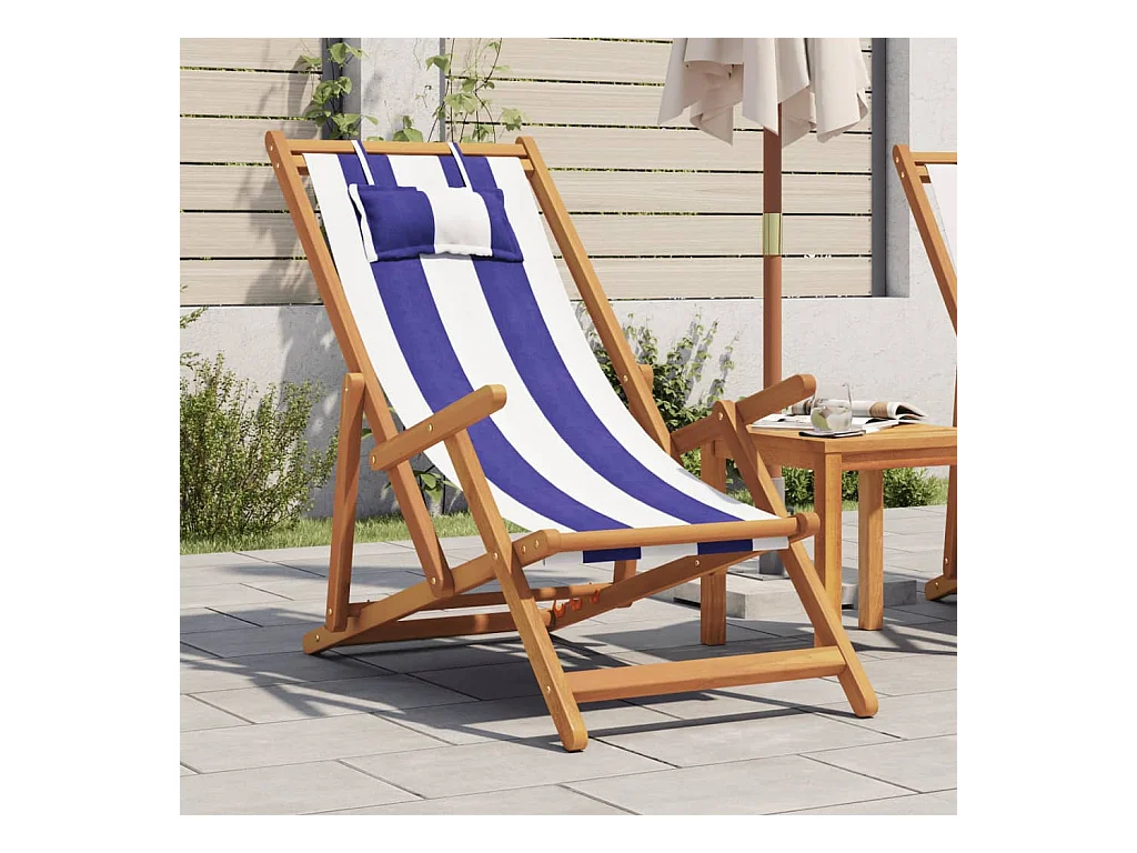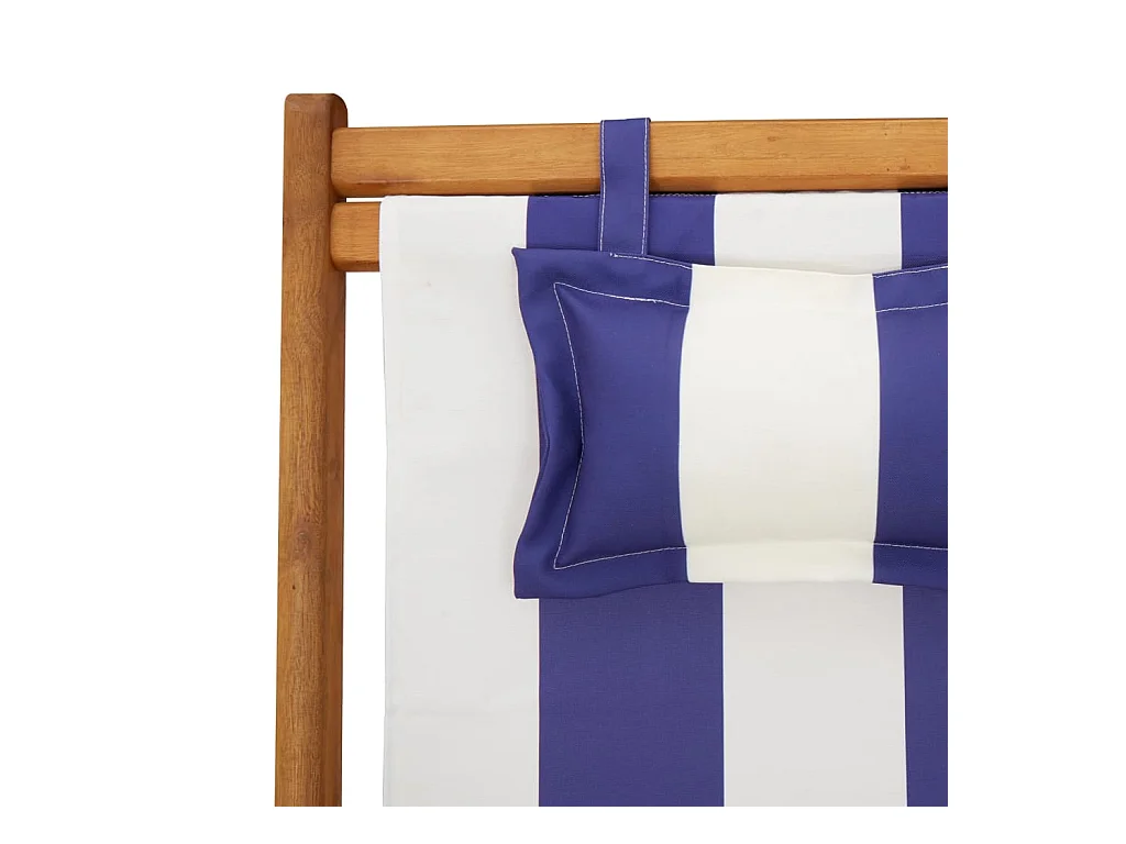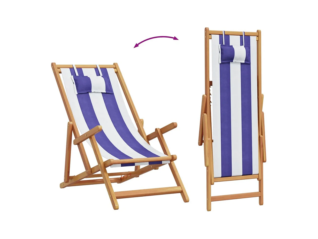 Strandstoel inklapbaar eucalyptushout en stof blauw en wit