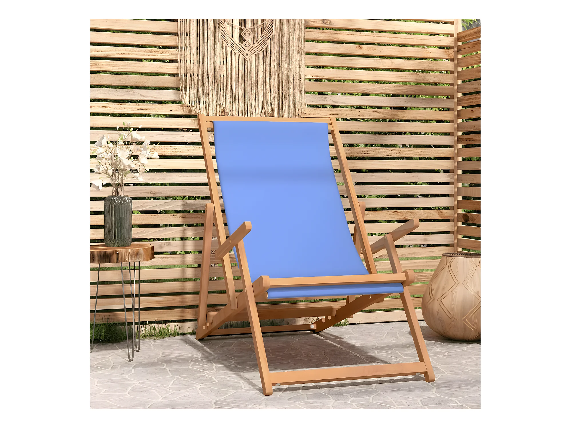 Strandstoel inklapbaar massief teakhout blauw NL532107