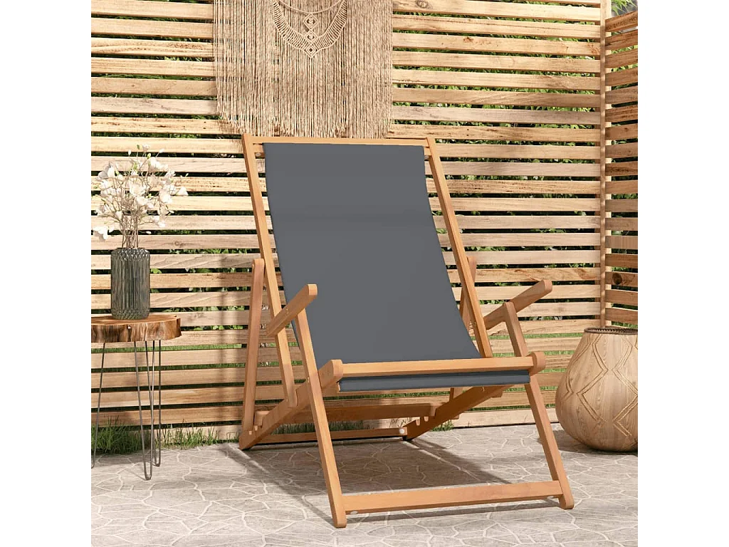 Strandstoel inklapbaar massief teakhout grijs