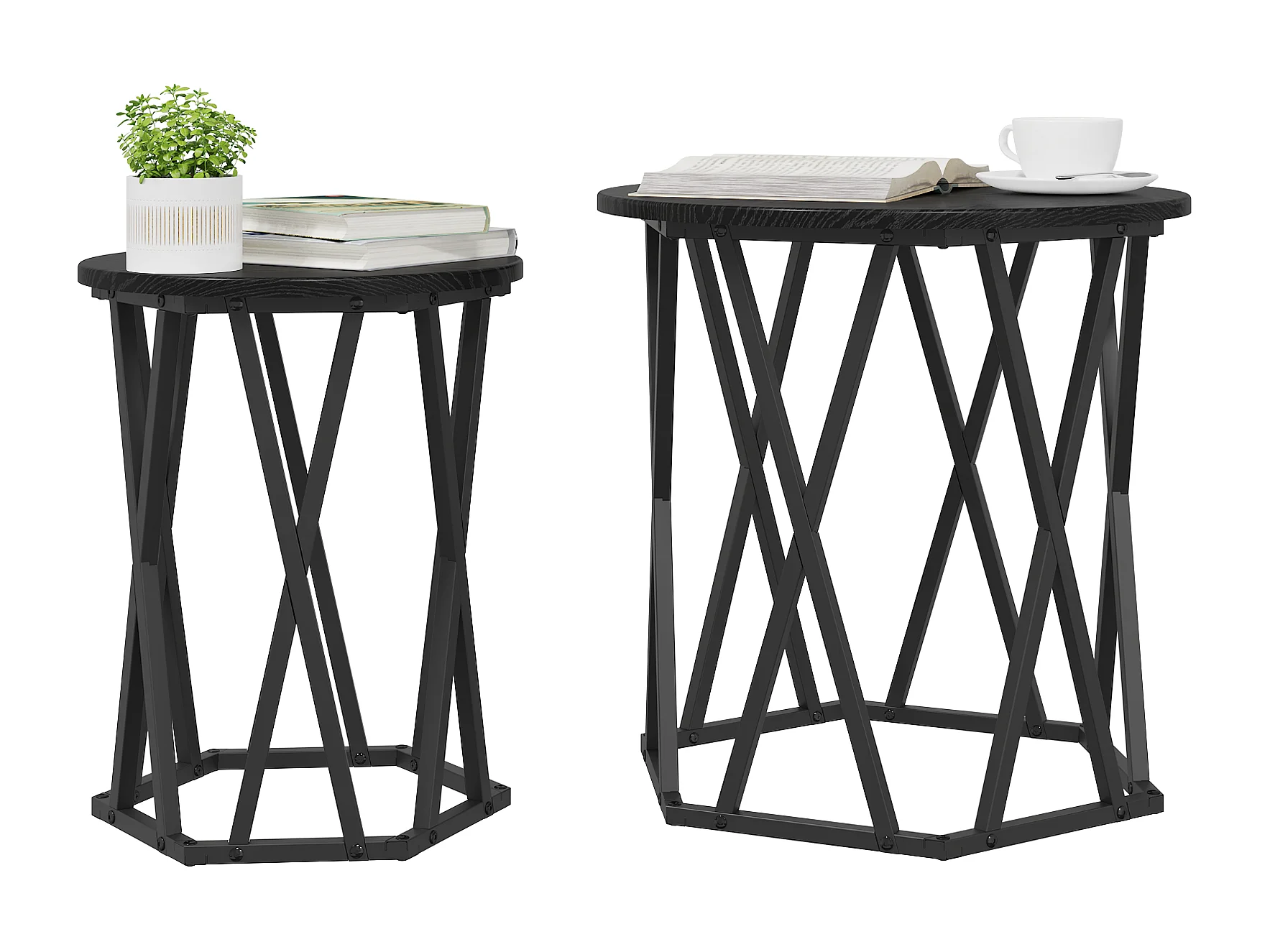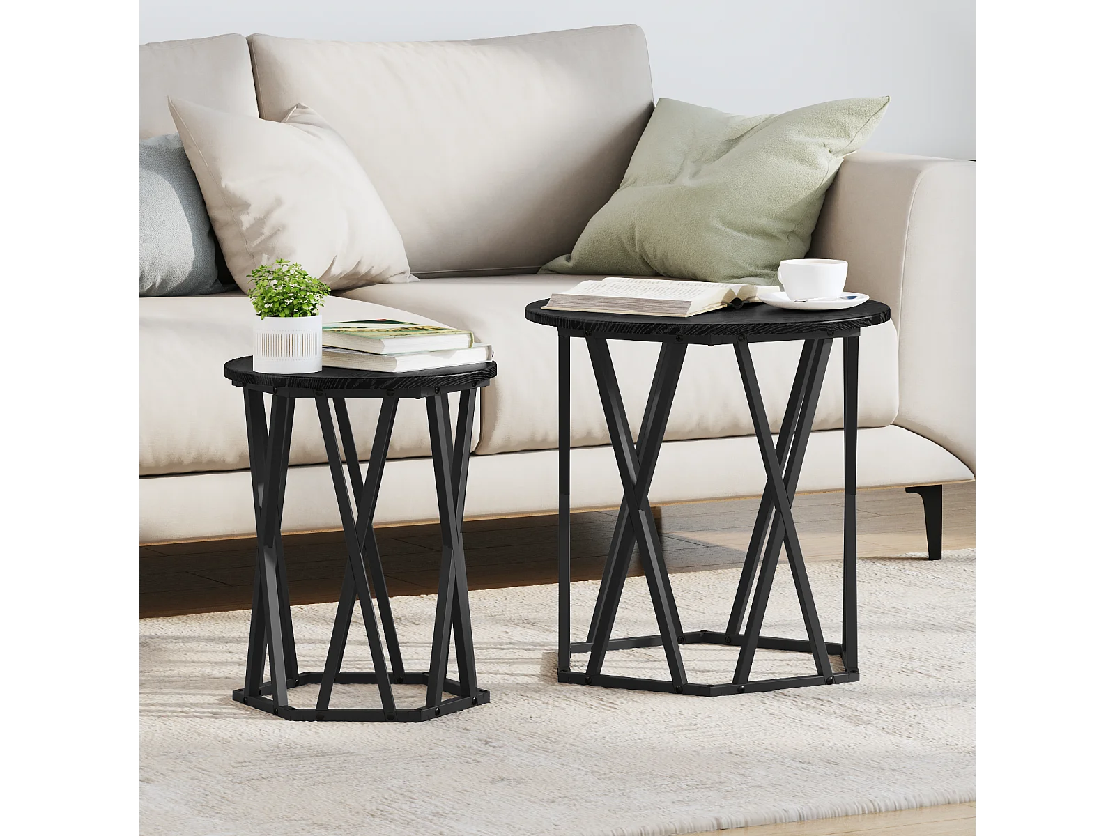 Nestbare salontafels 2 stuks zwart bewerkt hout