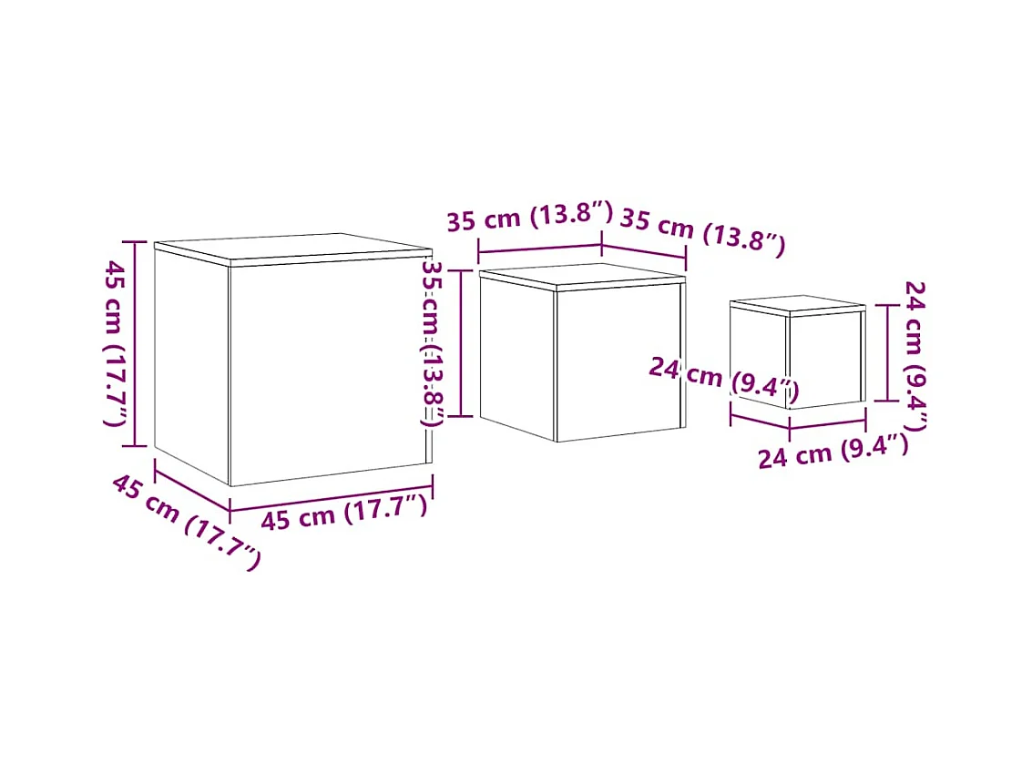 3-delige bijzettafels Sonoma Eiken Spaanplaat