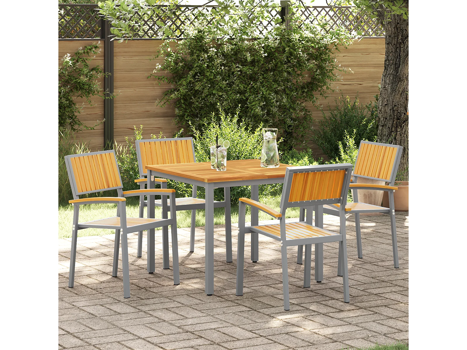 stuks stapelbare stoelen voor buiten, grijs, massief acaciahout en metaal