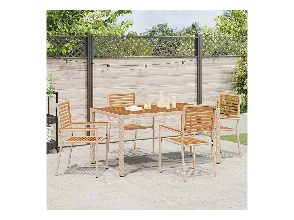 Tuinstoelenset van 4 massief teakhout en roestvrij staal