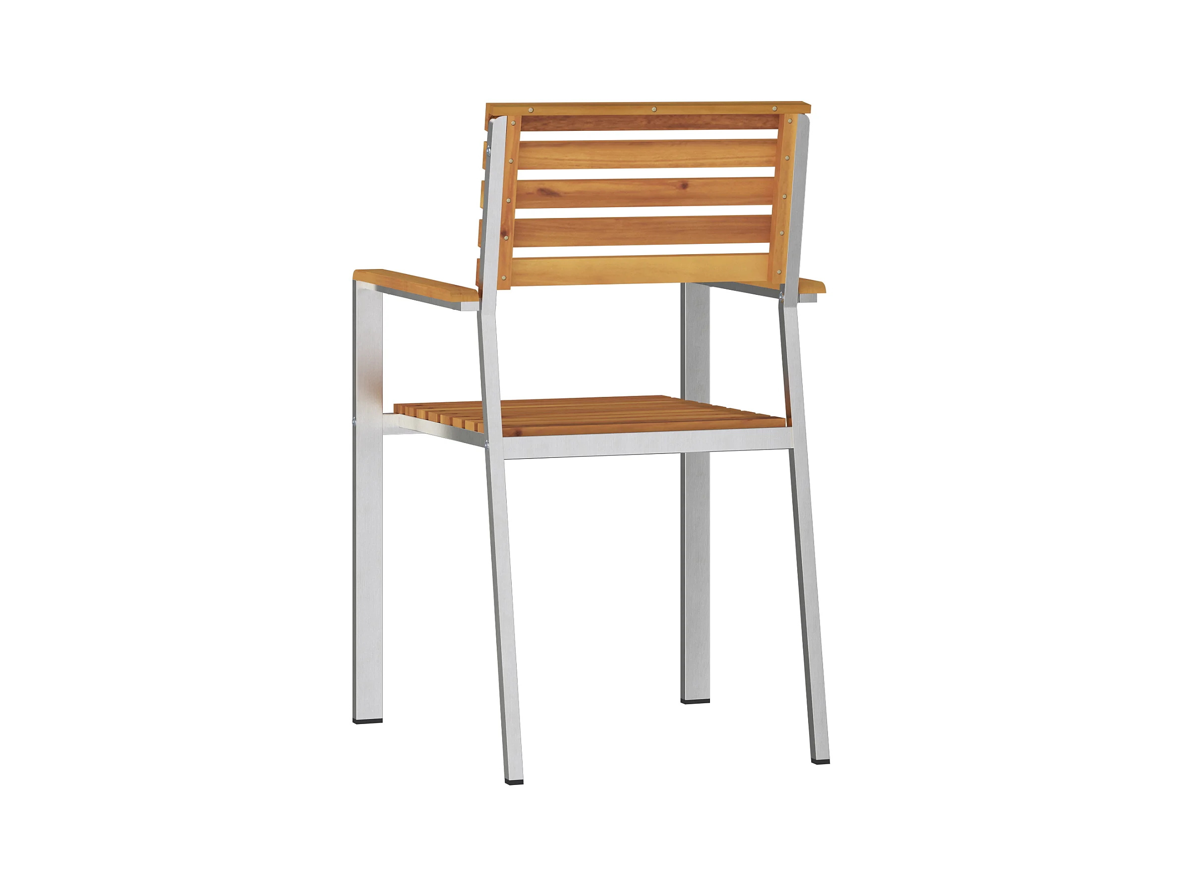 4-delige stapelbare tuinstoelen van acaciahout en roestvrij staal