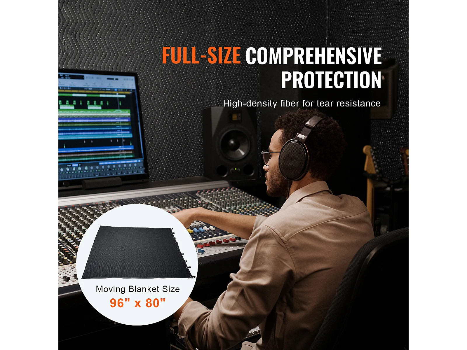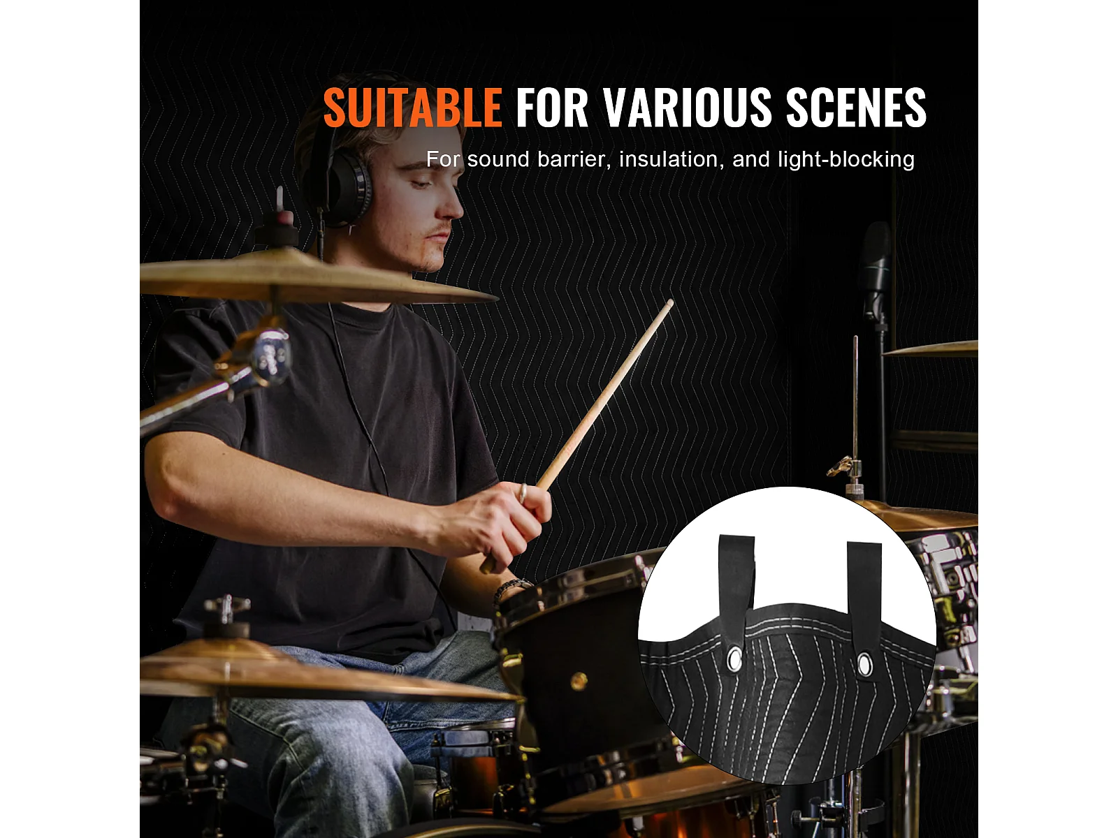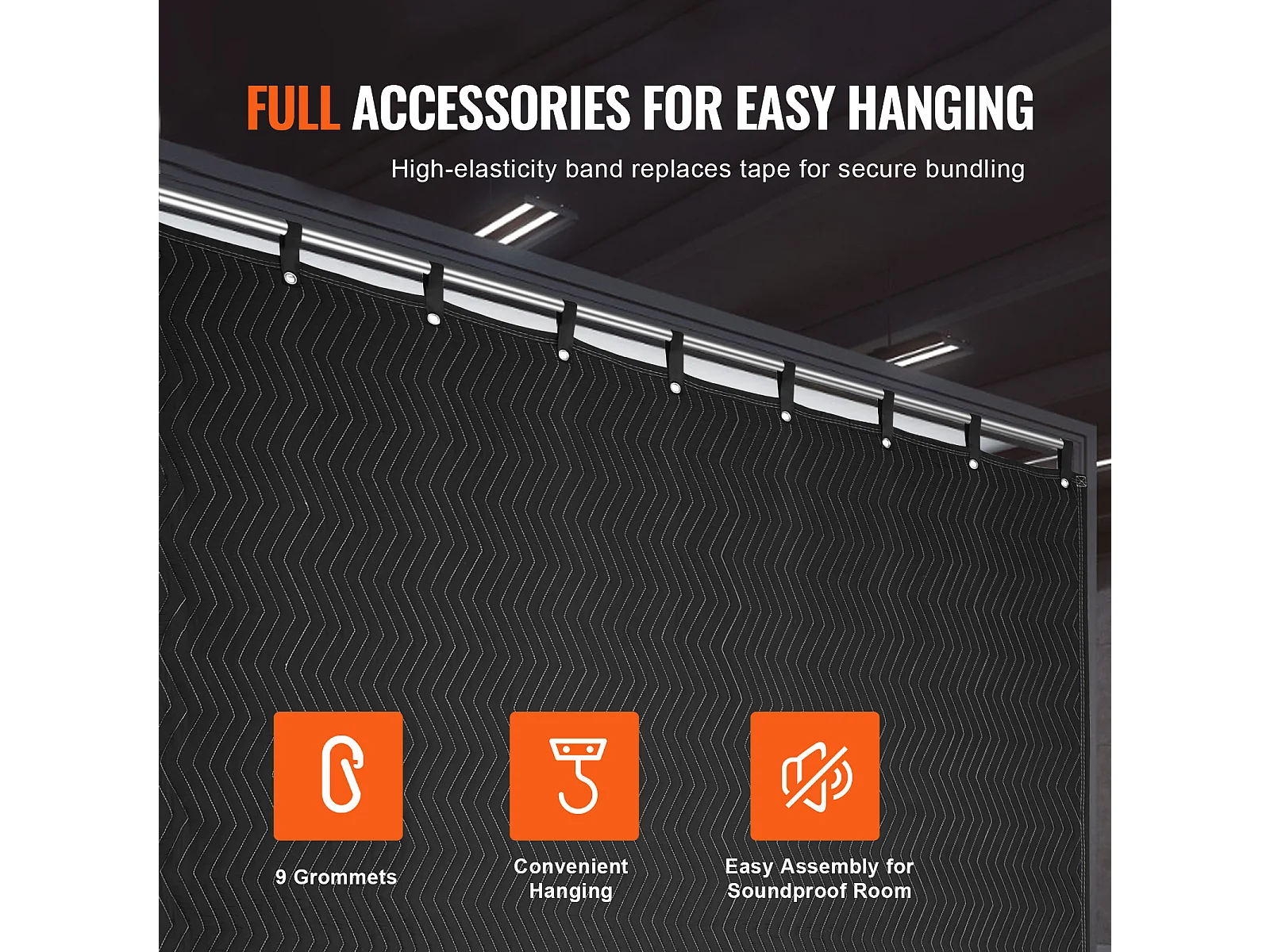 Dekking SucceBuy Geluidsisolerend 244 cm x 203 cm met Acoustische Ogen, Zwart - Perfect voor Geluidsisolatie van Studios en Woonruimten