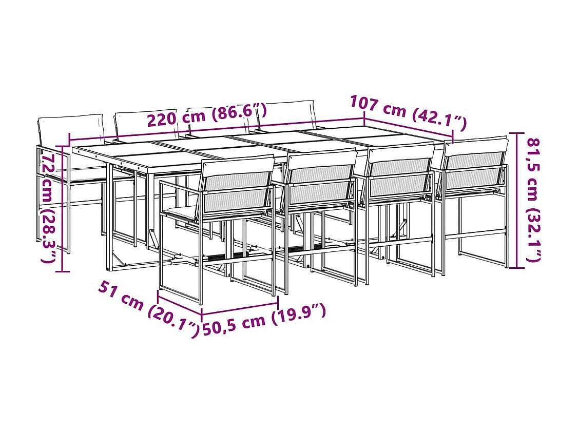 Dunkitt 9-delige Tuinset met kussens textileen wit