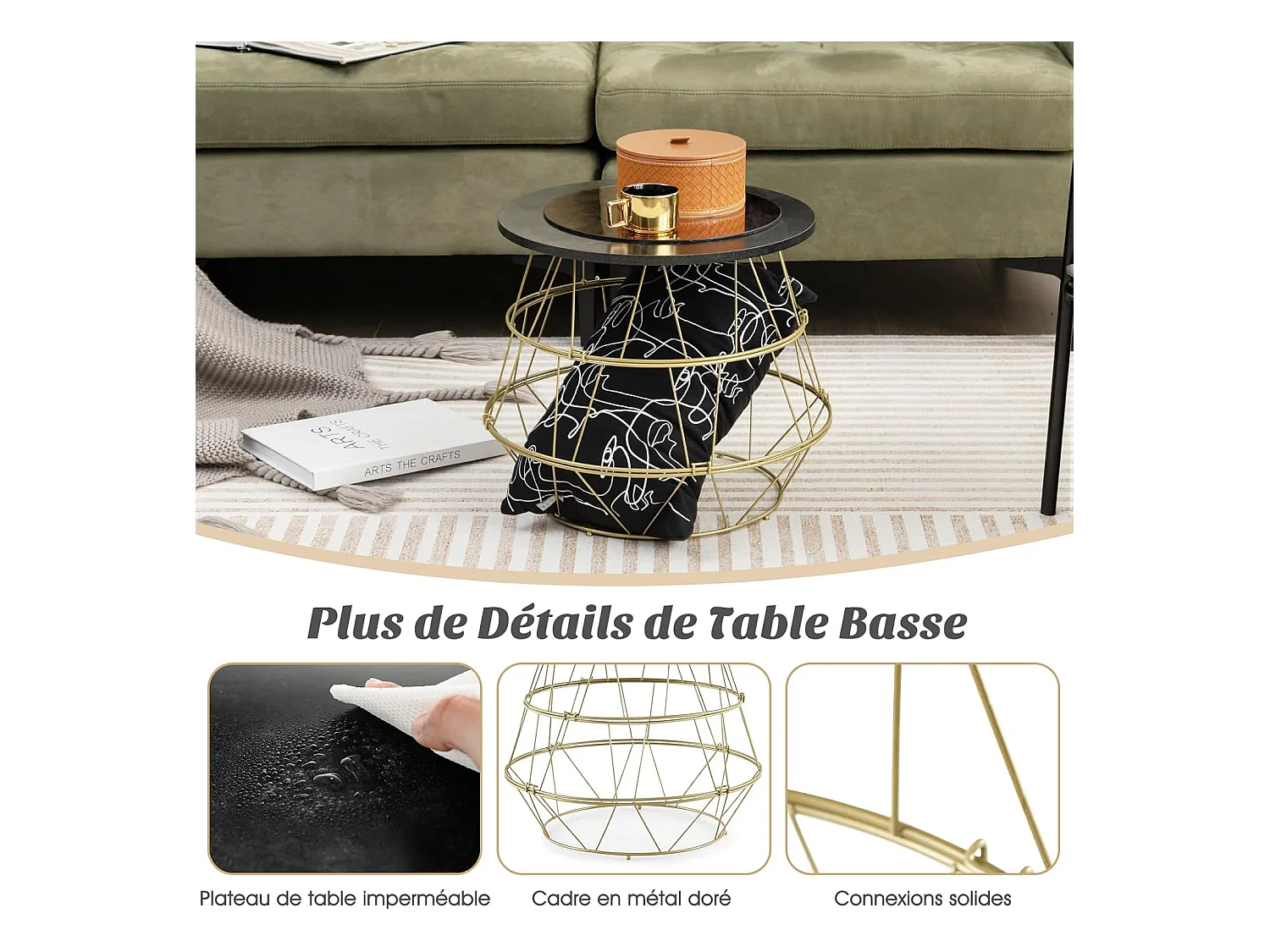 Table d’appoint, bout de canapé marbre noir avec cadre en métal doré, table ronde ø40x38