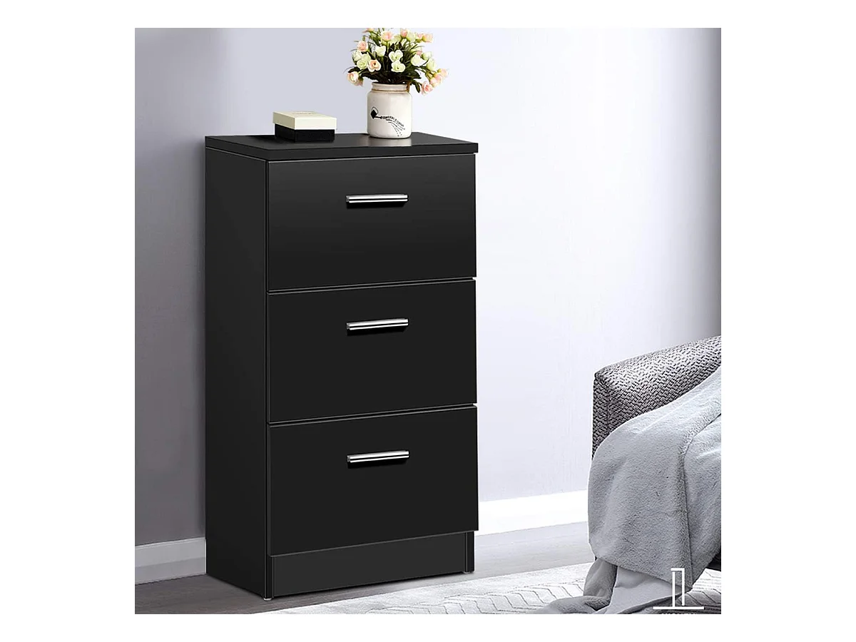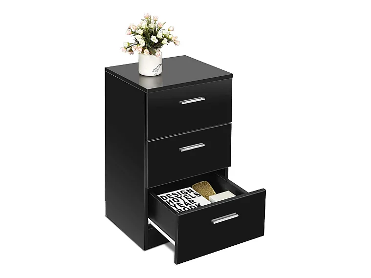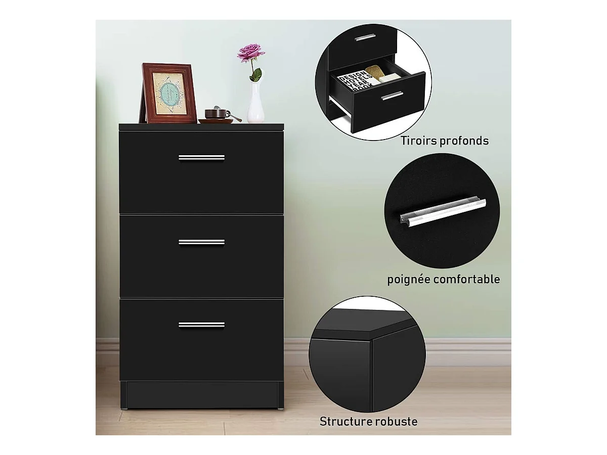 Table de chevet table de nuit noir en bois avec 3 tiroirs 35 x 38 x 67 cm
