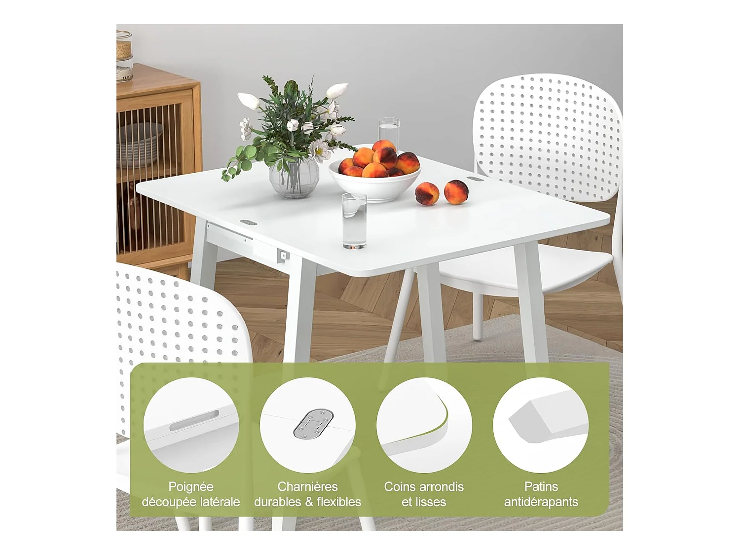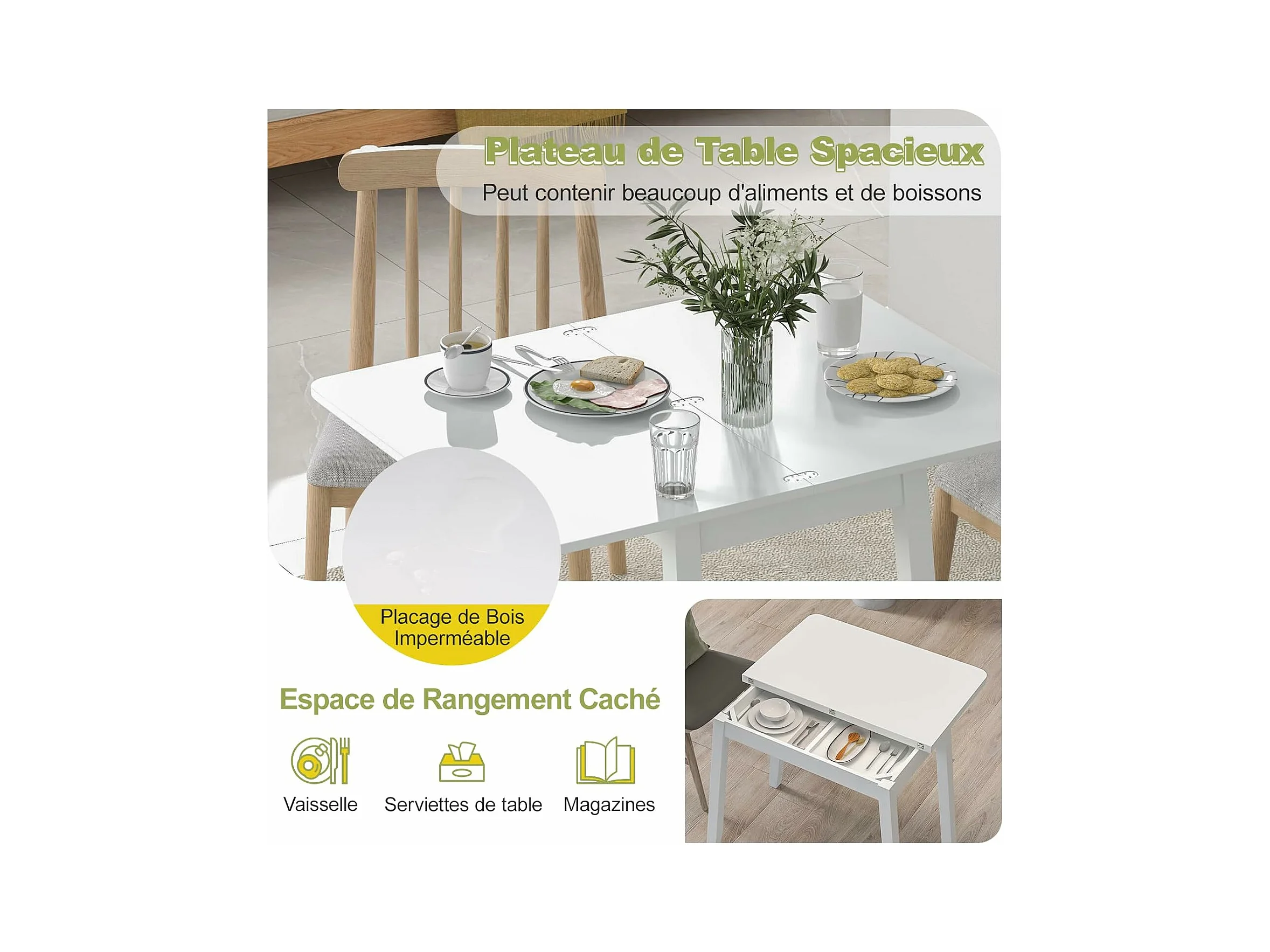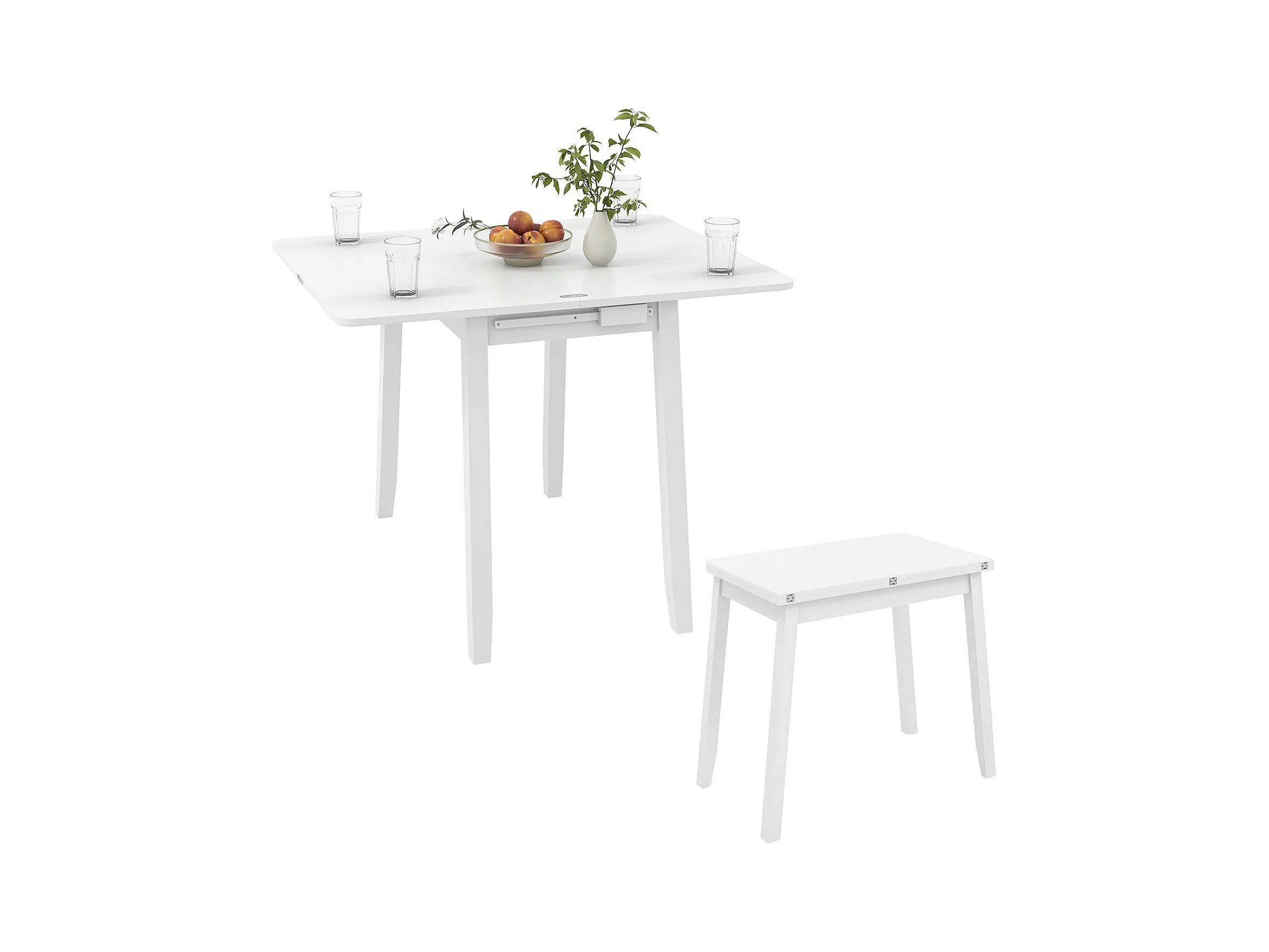 Table pliante cuisine, extensible, rangement caché, rabattable, 50-100 cm(blanc)