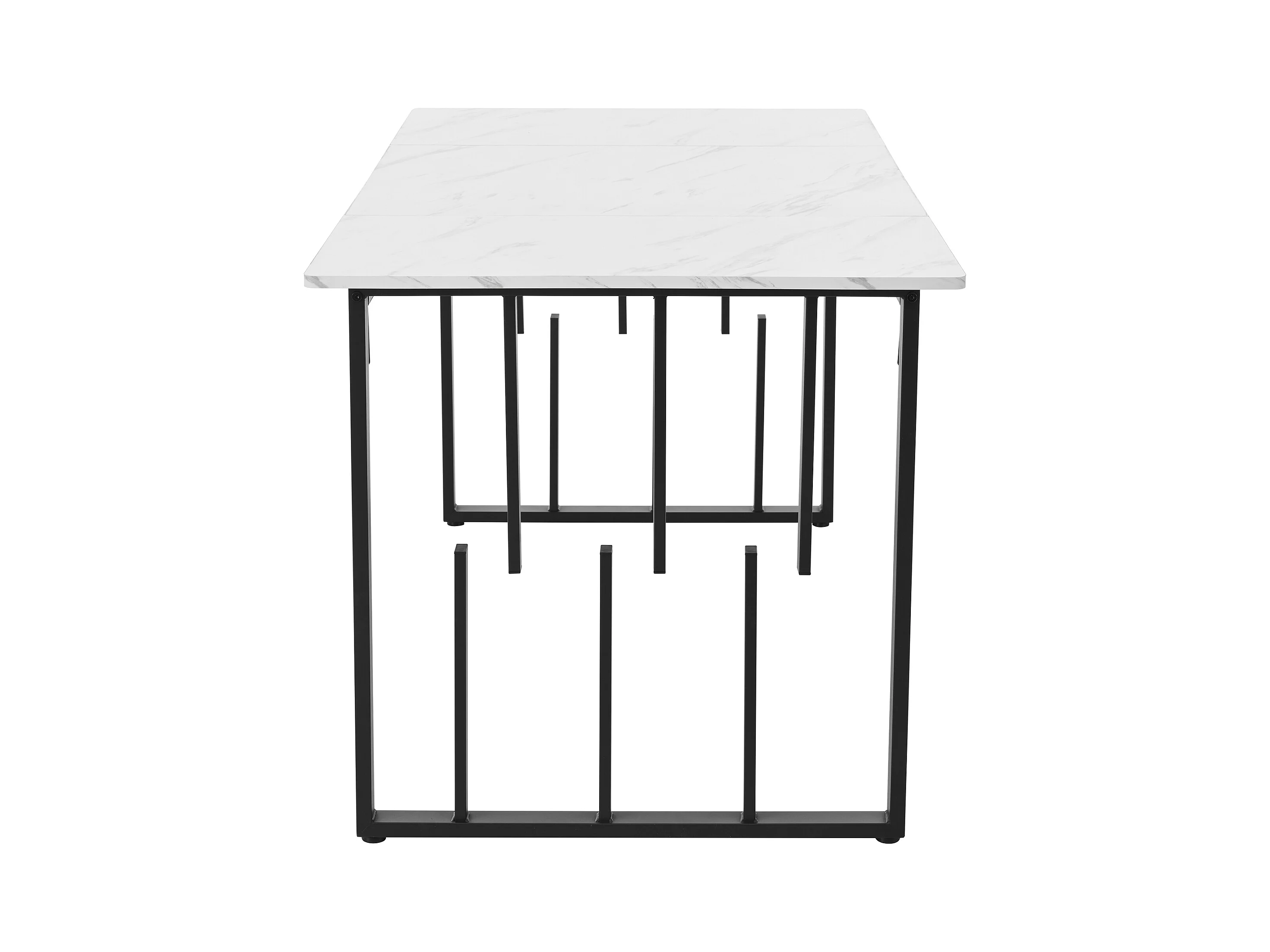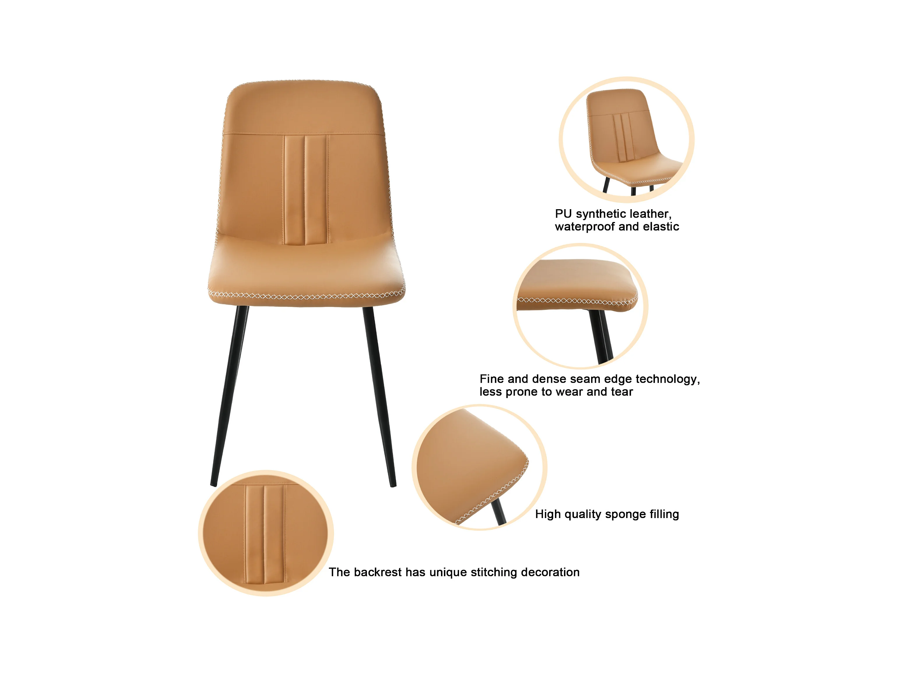 Tafel + 4 stoelen set in PU leer - Tafel 140 x 80 cm - Metalen poten - Bruin + wit