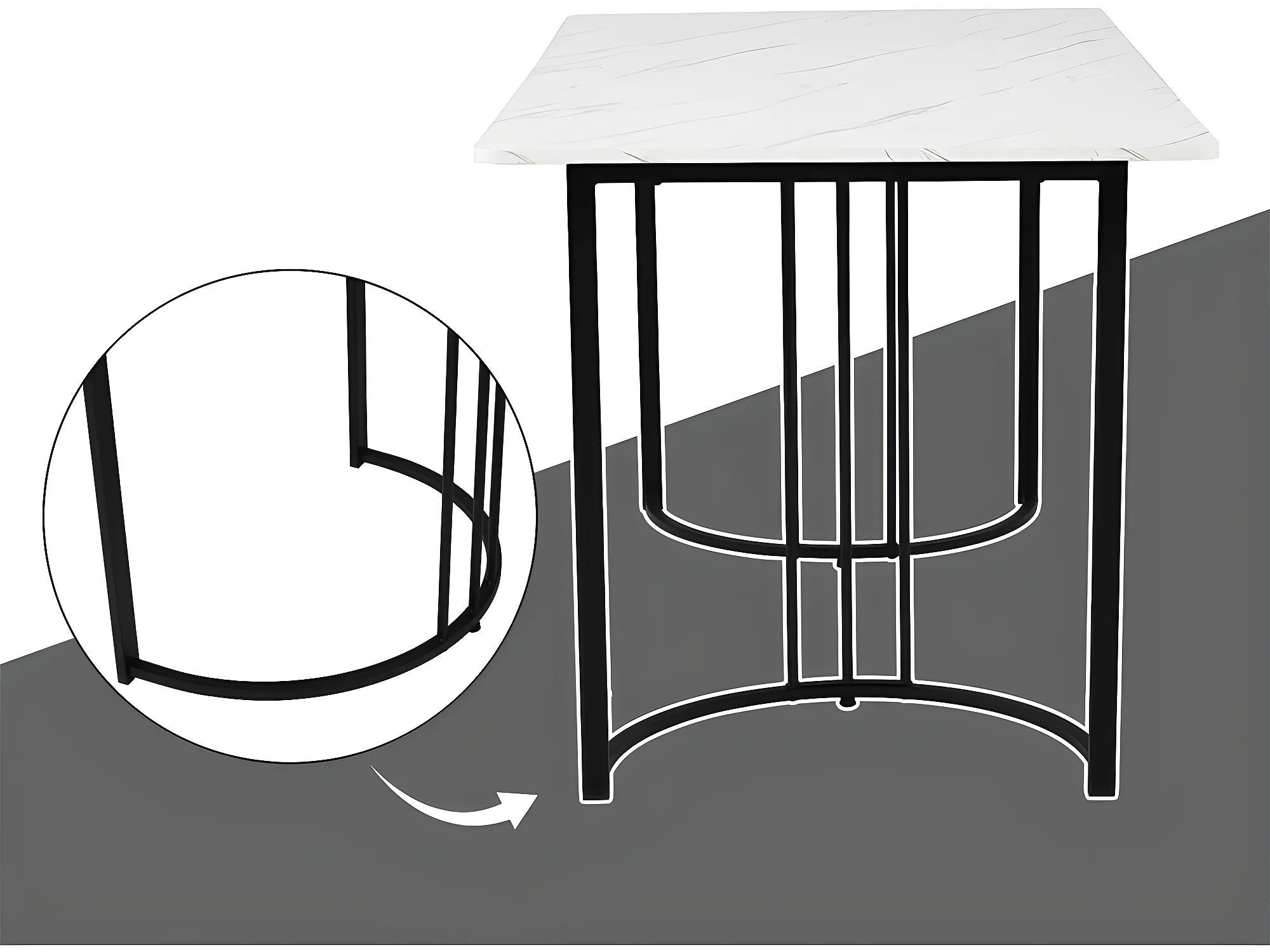 Tafel- en 4-stoelenset - Tafel met marmerpatroonfineer - Fluwelen gestoffeerde stoelen met verstelbare poten - Wit en grijs