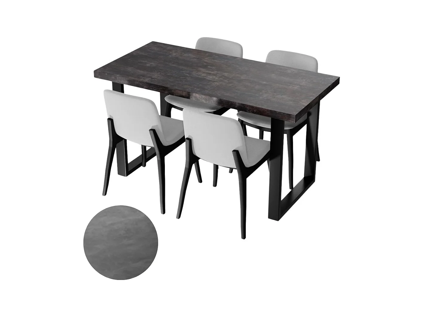 Tafel voor de eetkamer Loft in donker betonkleur met zwarte poten.