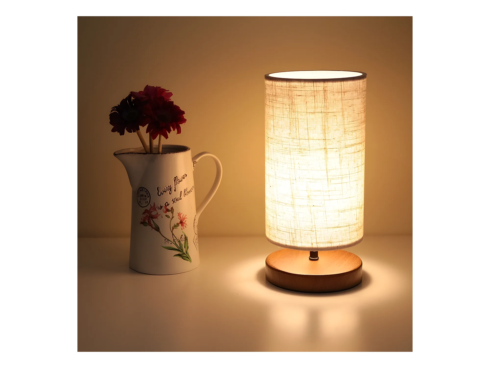 Niron tafellamp met houten voet en stoffen kap 1xE27 ø15cm - Beige