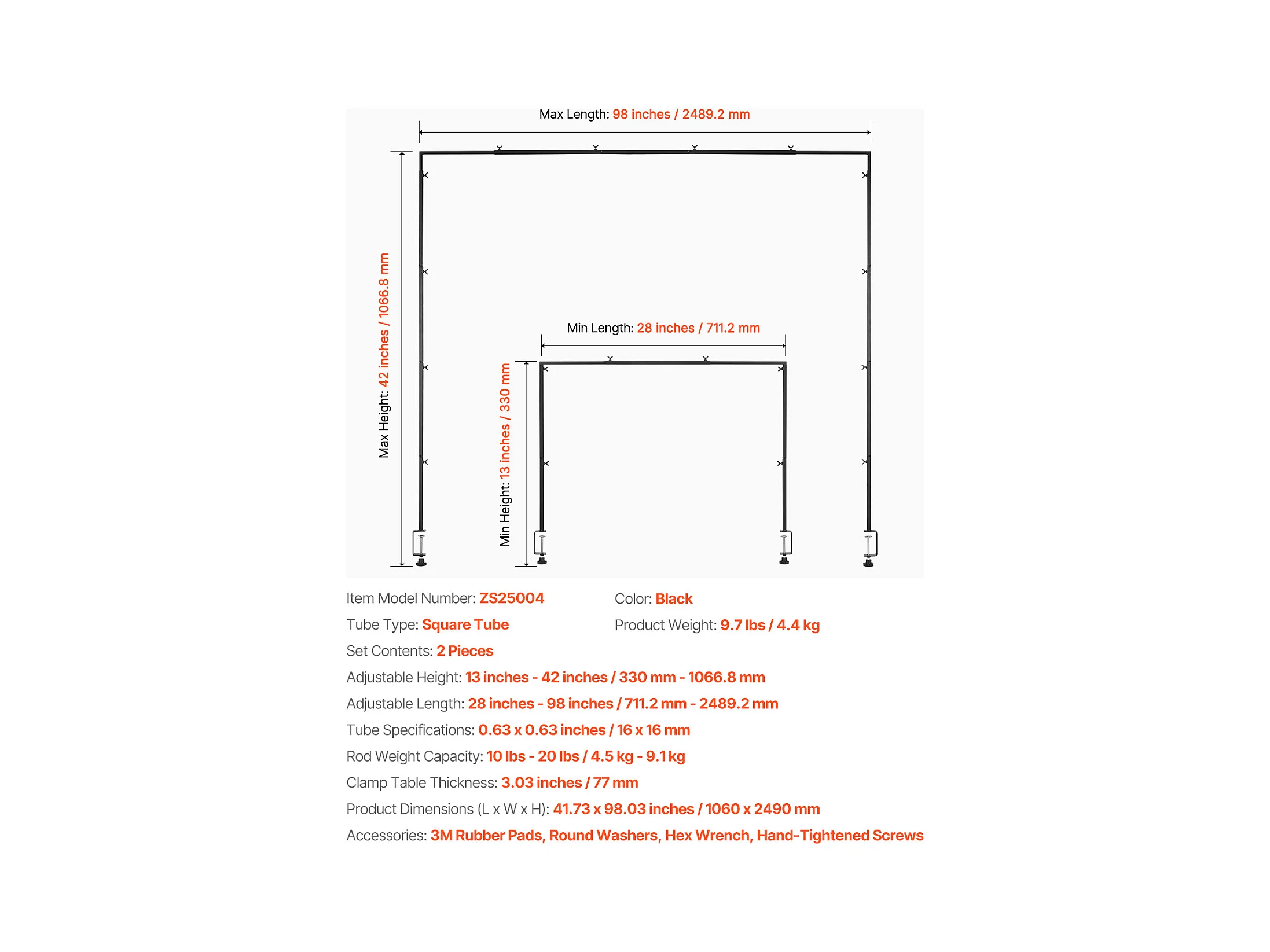 Tafelstanghouder SucceBuy met Klemmen, Tafelbooghouder, 2 PCS, Hoogte Verstelbaar 33-106.7 cm Lengte Verstelbaar 71.1-249 cm, Metaalboogframe