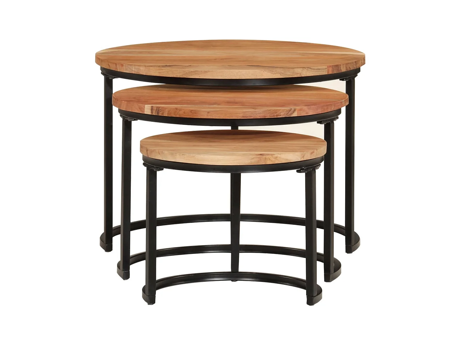 Tafeltjesset 3 st massief ruw mangohout NL79528